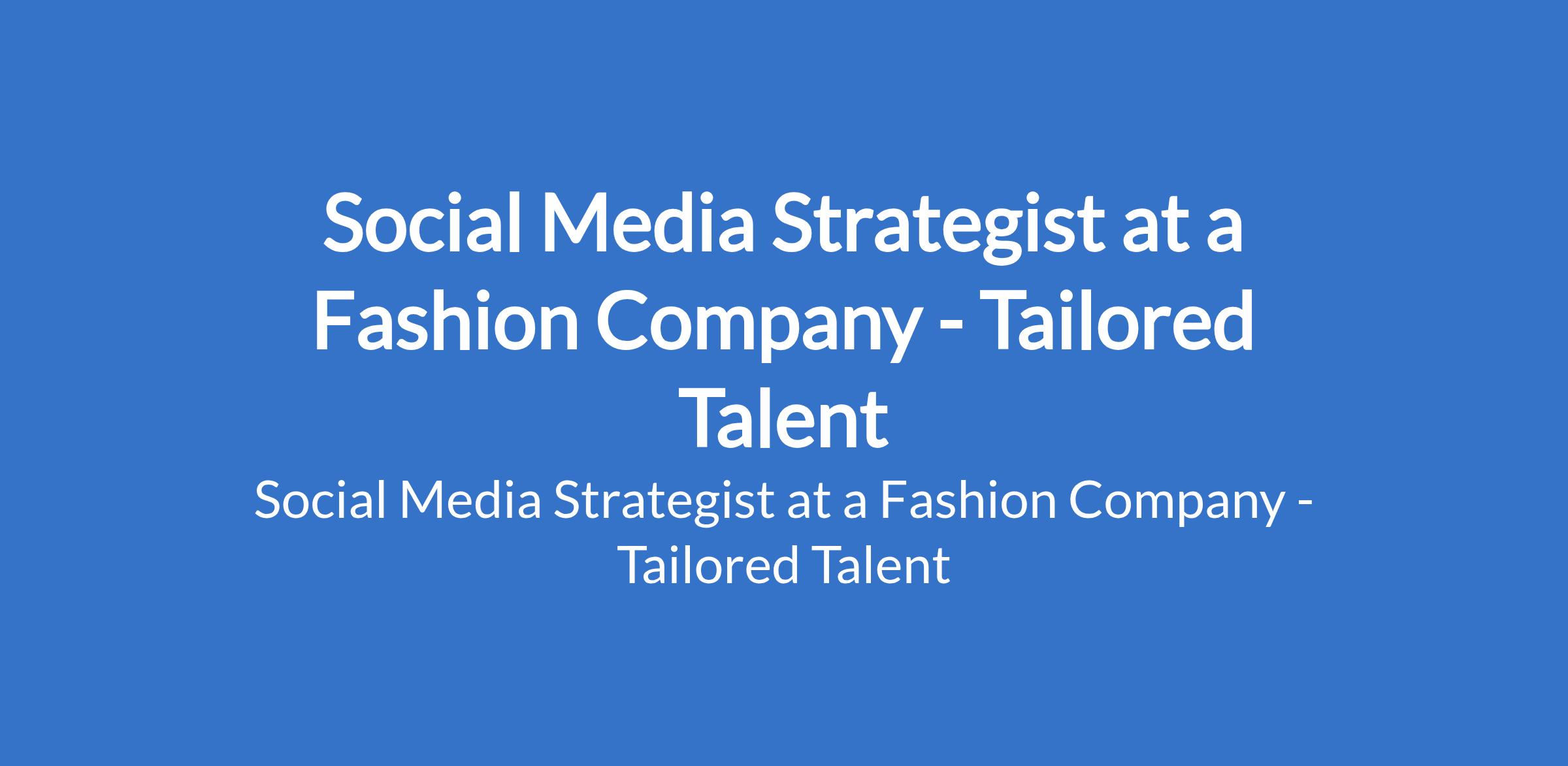 Tailored Talent - Our client, a Fashion company is recruiting to fill the position of: Social Media Strategist. The position is located in Osapa London - Lekki, Lagos State. Salary: N180,000 - N250,000 per month. Interested candidates should possess a Bachelors Degree in Mass Communication, Business Administration, or a related field with 2 - 3 years of proven experience as a Social Media Strategist or Manager.