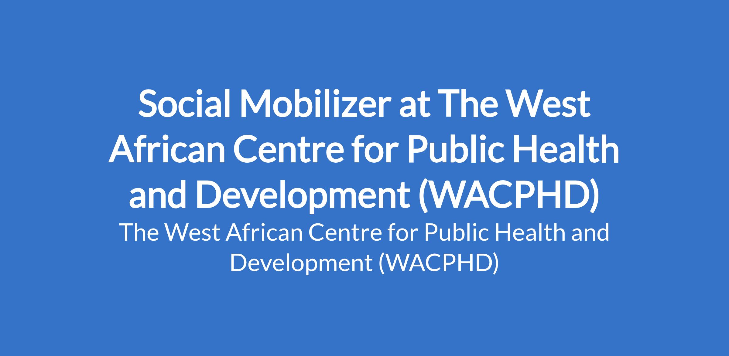 Previous experience working on WACPHD/IGPH projects is an added advantage