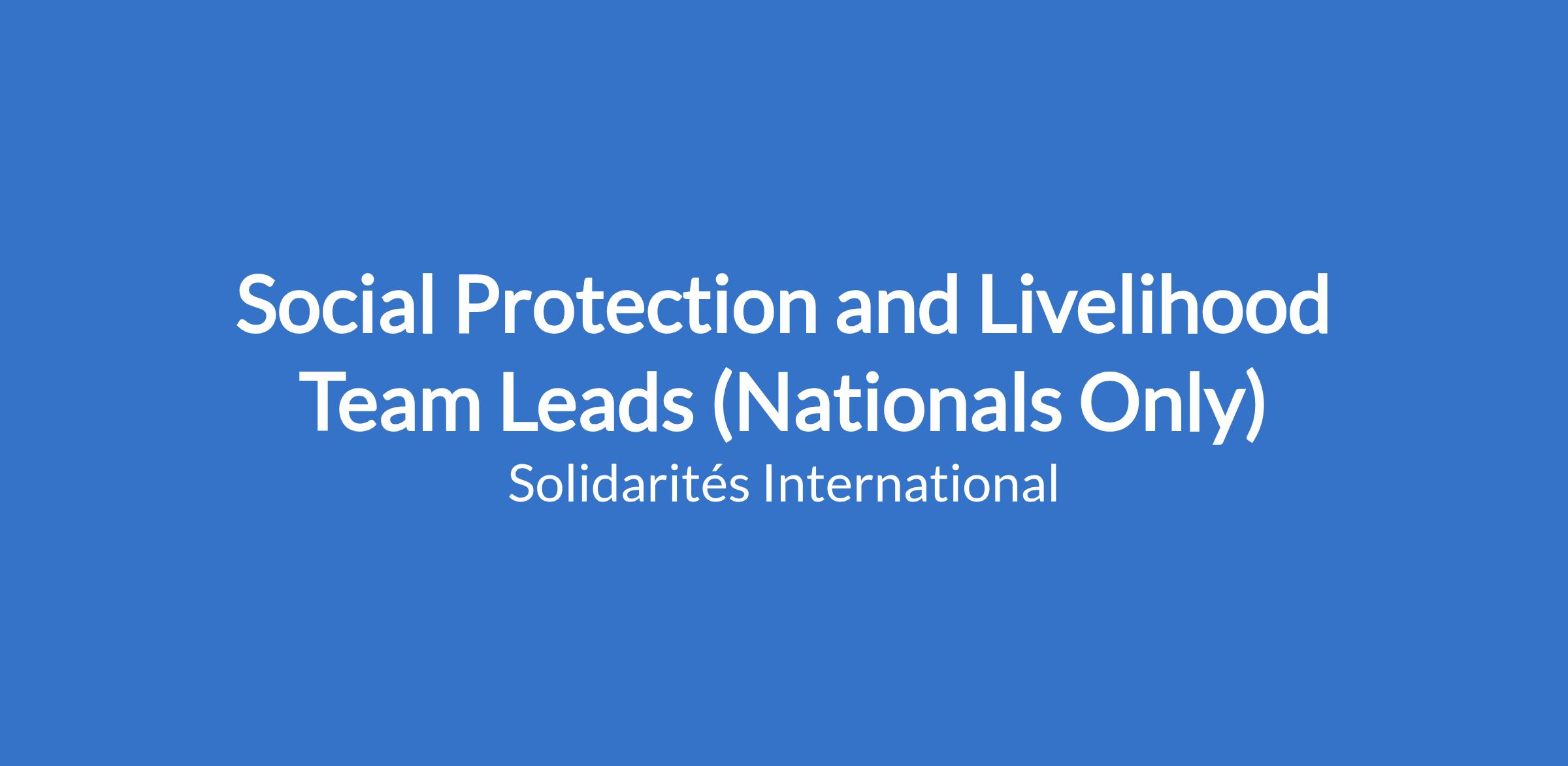 - The Team Leaders will set up the Social Protection and Livelihood project activities, ensuring that Solidarités International’s technical recommendations and procedures are followed.