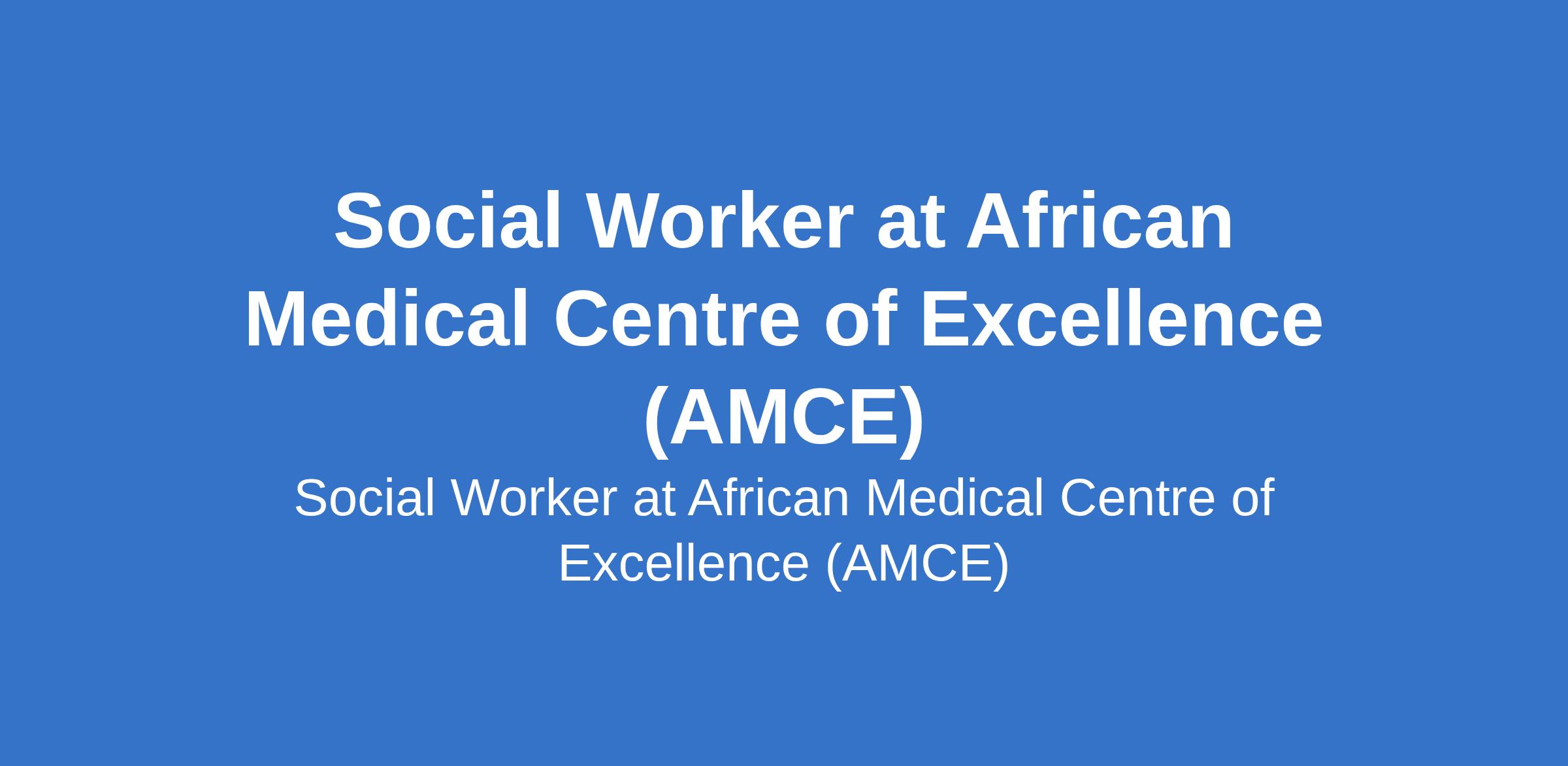 African Medical Centre of Excellence (AMCE) is recruiting to fill the position of: Social Worker. Interested candidates should possess a Bachelors Degree in Social Work or a related field (mandatory), valid licensure or registration to practice as a Social Worker is required with 3-5 years of post-qualification experience in a healthcare setting, such as a hospital, hospice, or rehabilitation center; Direct experience in discharge planning, crisis intervention, and safeguarding within a medical environment is mandatory.