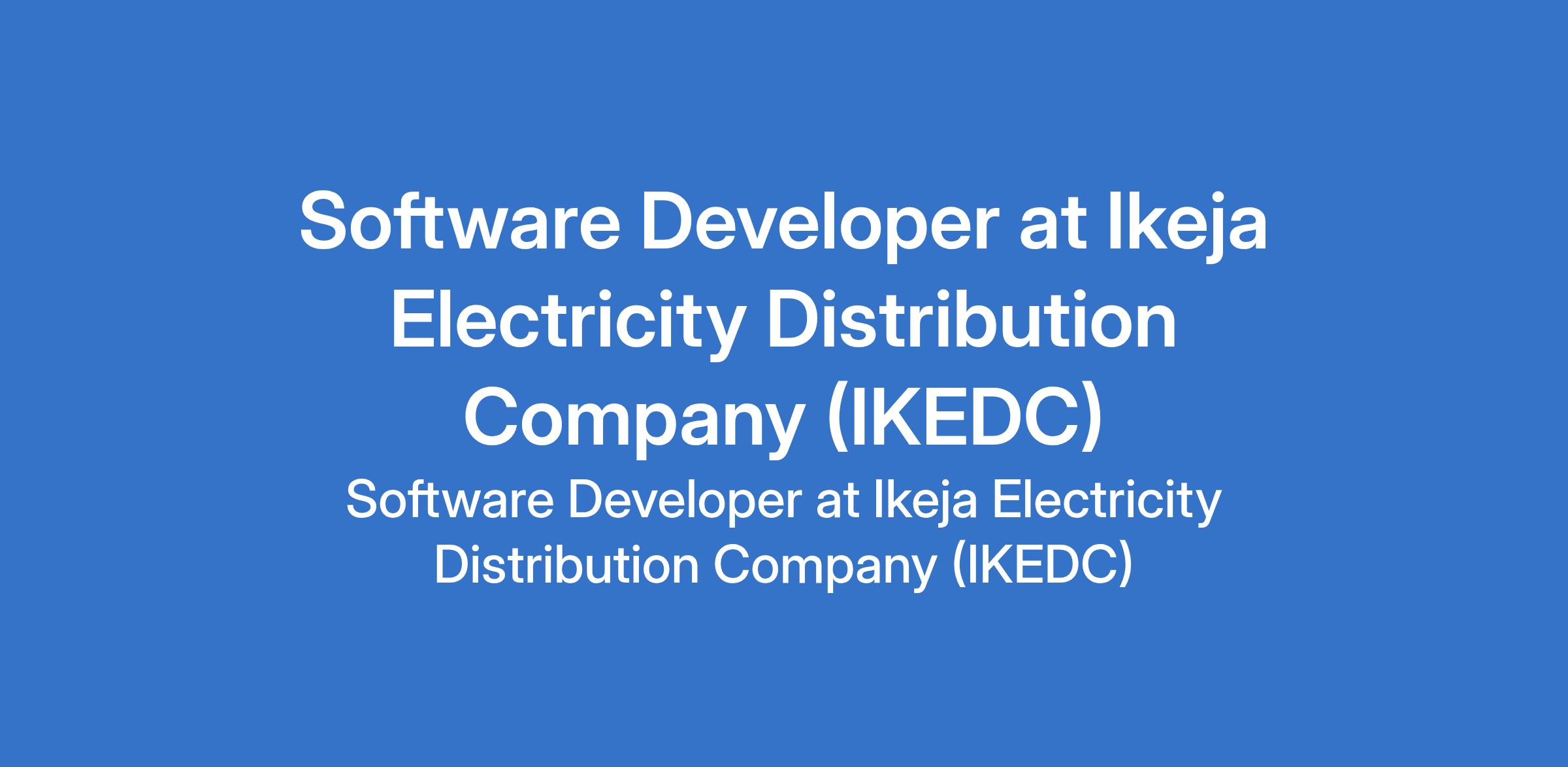 Ikeja Electricity Distribution Company (IKEDC) is recruiting to fill the position of: Software Developer. The position is located in Lagos State. Interested candidates should possess a Master`s / Bachelor's Degree in Information Technology or Computer Science with a minimum of 5 years experience in management/implementation of IT application systems, preferably in an electricity utility.