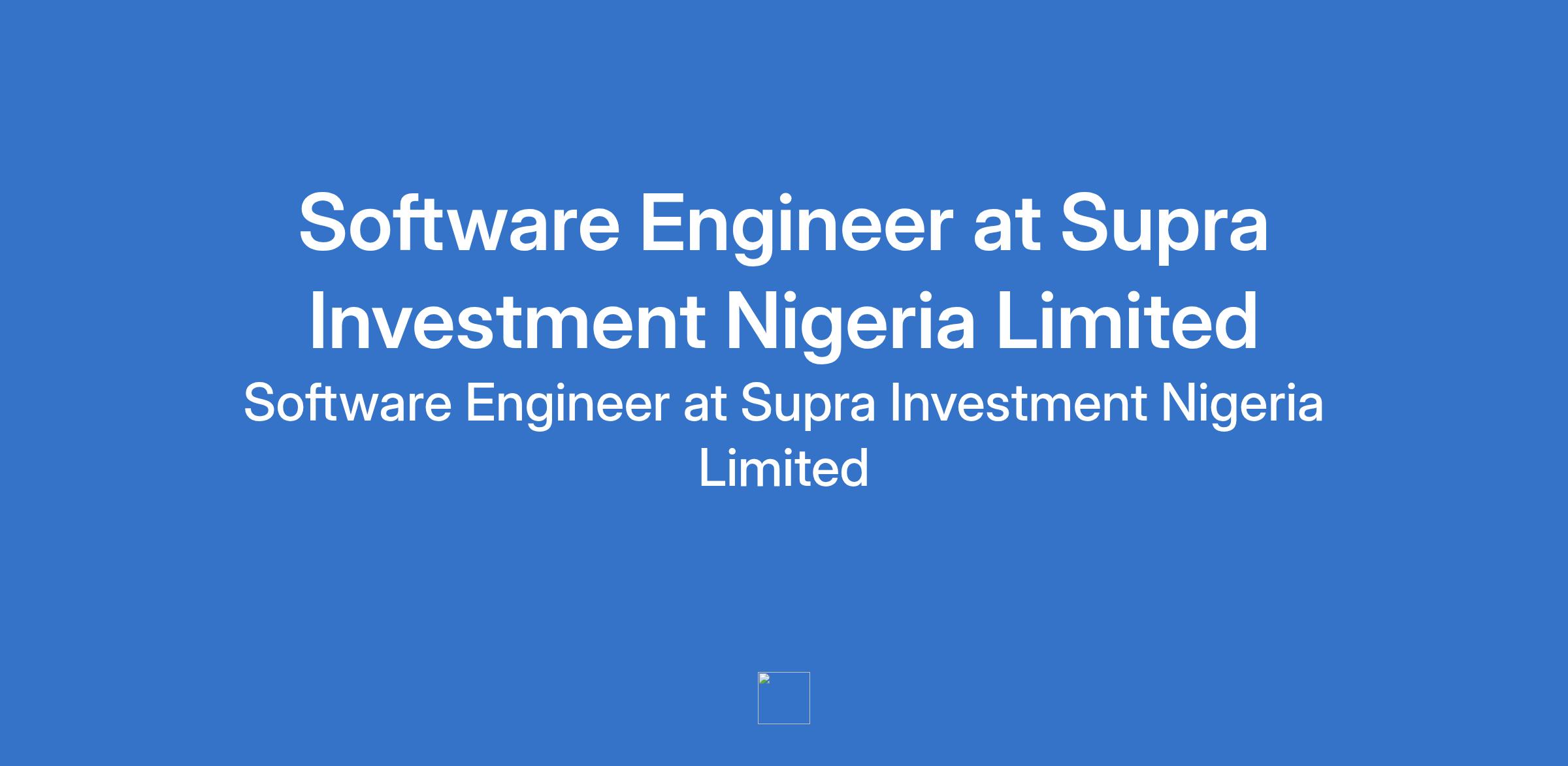 Supra Investment Nigeria Limited is recruiting to fill the position of: Software Engineer. The position is located in Abuja (FCT). Interested candidates should possess a First Degree in Computer Science, Engineering or technical skills required for this role with 5 - 6 years of software development experience, preferably in energy, power, or utilities-focused software projects.