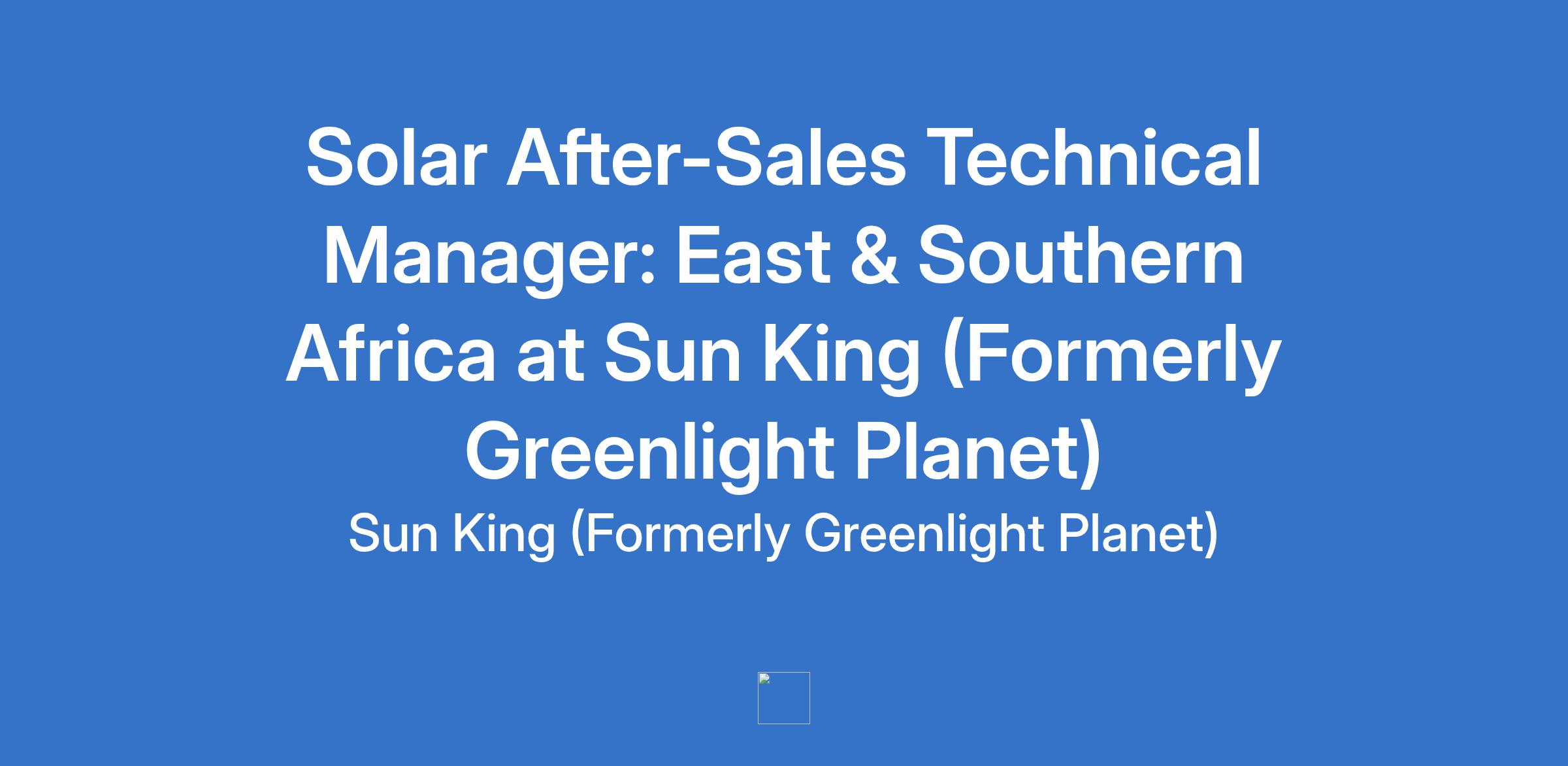 Sun King is seeking an After-Sales Manager to oversee the After-Sales Operations team across multiple East and South African countries. This role will oversee after-sales operations, ensuring high customer satisfaction through efficient service delivery, warranty management, spare parts coordination, and technical assistance.