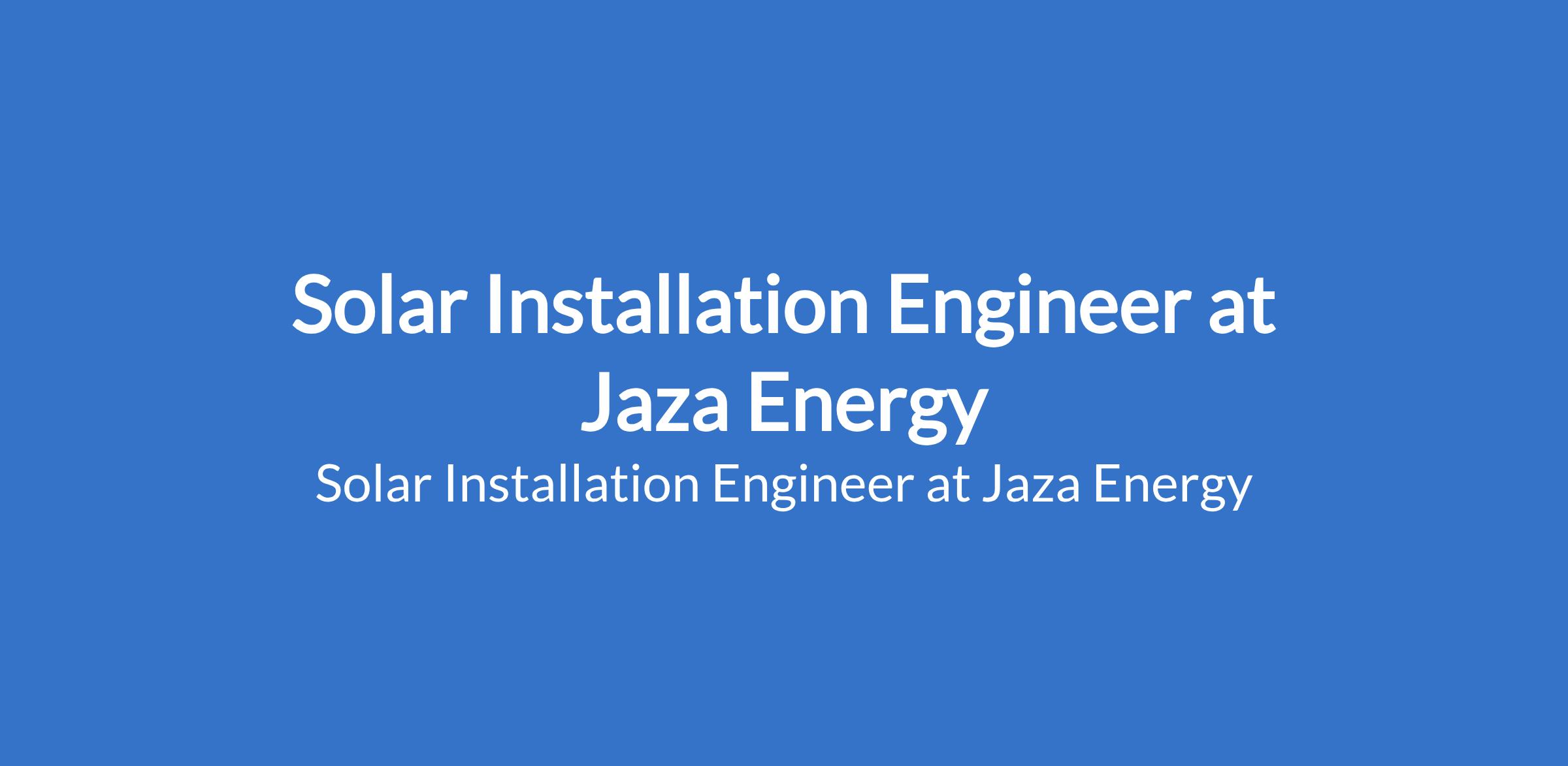 Solar Installation Engineer at Jaza Energy