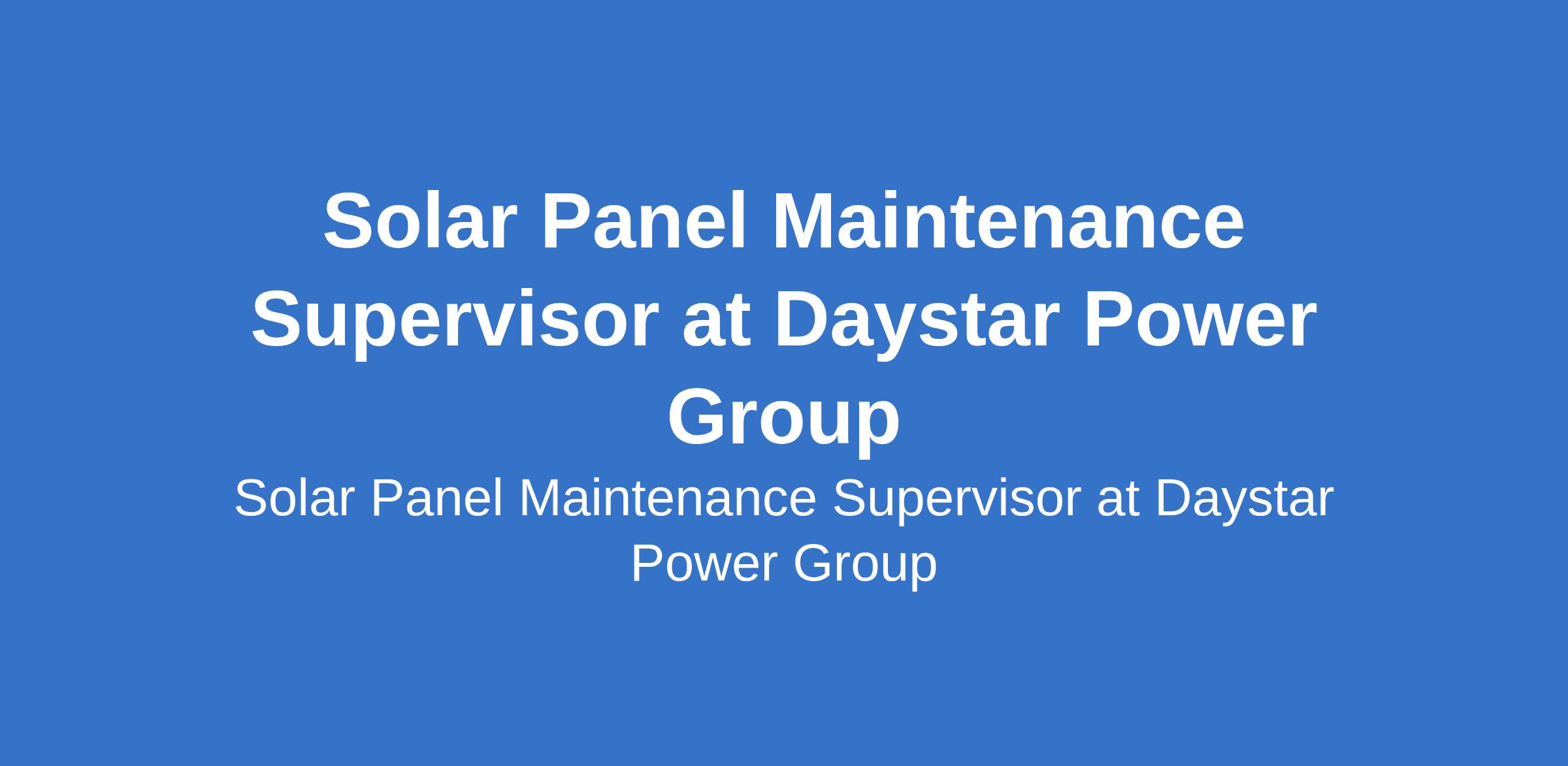 Daystar Power Group is recruiting to fill the position of: Solar Panel Maintenance Supervisor. The position is located in Lagos State. Interested candidates should possess minimum of a Bachelors Degree in Electrical Engineering with a minimum of 3 years work experience in Electrical Engineering roles, preferably in the renewable energy or power industry, installing and / or maintaining solar systems and must demonstrate proficiency with Microsoft Office (Microsoft Excel and Word).