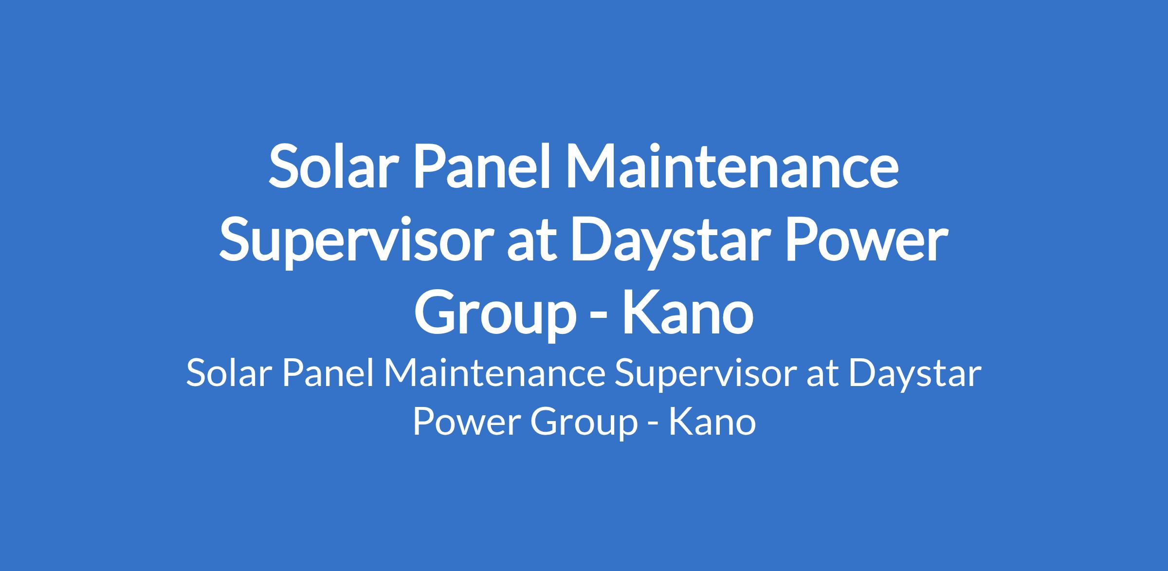 Daystar Power Group is recruiting to fill the position of: Solar Panel Maintenance Supervisor. The position is located in Kano State. Interested candidates should possess minimum of a Bachelors Degree in Electrical Engineering with a minimum of 3 years work experience in Electrical Engineering roles, preferably in the renewable energy or power industry, installing and / or maintaining solar systems and must demonstrate proficiency with Microsoft Office (Microsoft Excel and Word).