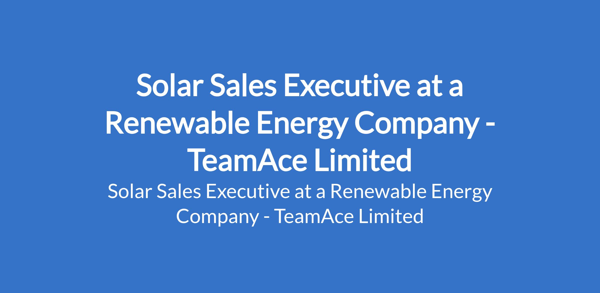 TeamAce Limited Our client, a Renewable Energy Company is recruiting to fill the position of: Solar Sales Executive. The position is located in Lagos State. Salary: N200,000 - N300,000 monthly. Interested candidates should possess a minimum of OND in any related field with 23 years proven experience in sales, preferably within the solar or renewable energy industry and must be based in Lagos and willing to work in a hybrid environment.