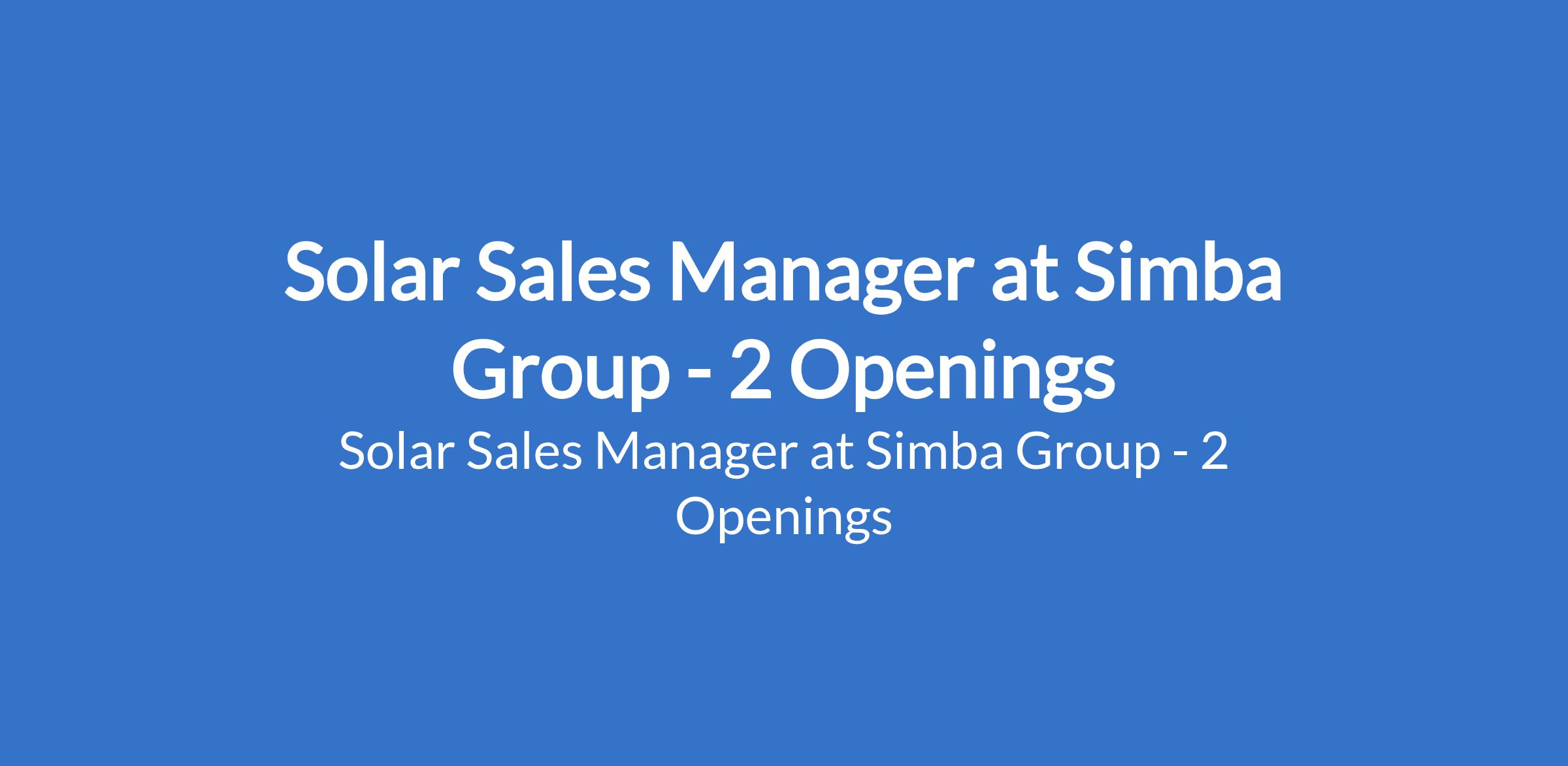 Simba Group is recruiting to fill the position of: Solar Sales Manager. The position is located in Ikeja - Lagos and Port Harcourt - Rivers State. Interested candidates should possess a Bachelors Degree in Engineering (Electrical, Mechanical, Energy), or Business Administration, Marketing, or a related field with 5 years of proven experience in B2B sales, preferably in the Renewable Energy Sector, Industrial Engineering sectorwith a focus on commercial and industrial clients.