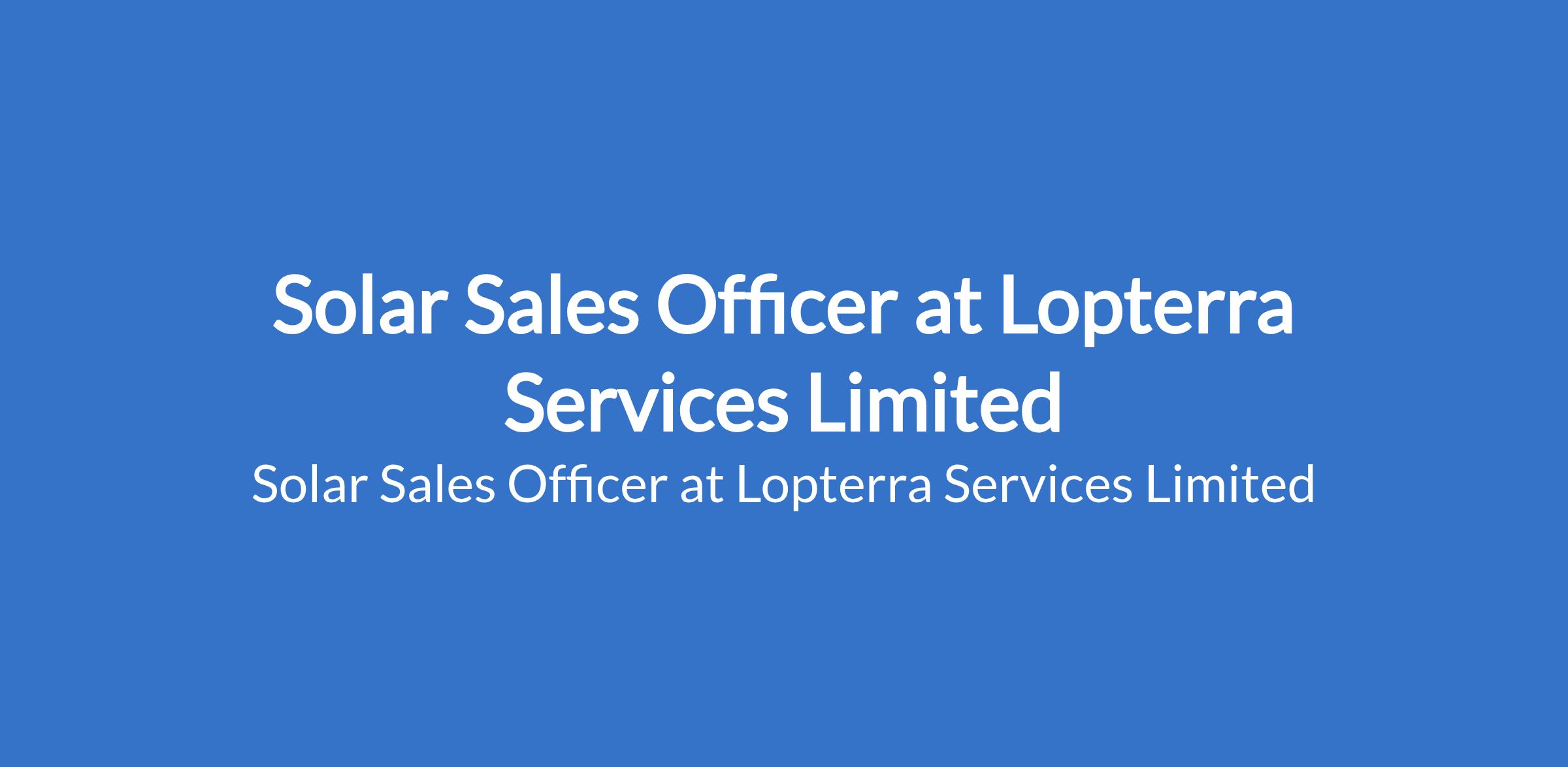 Lopterra Services Limited - Our client, a fast-growing provider of solar energy equipment is recruiting to fill the position of: Solar Sales Officer. The position is located in Festac, Lagos State. Salary: N150,000 monthly. Interested candidates should possess relevant qualifications and experience.
