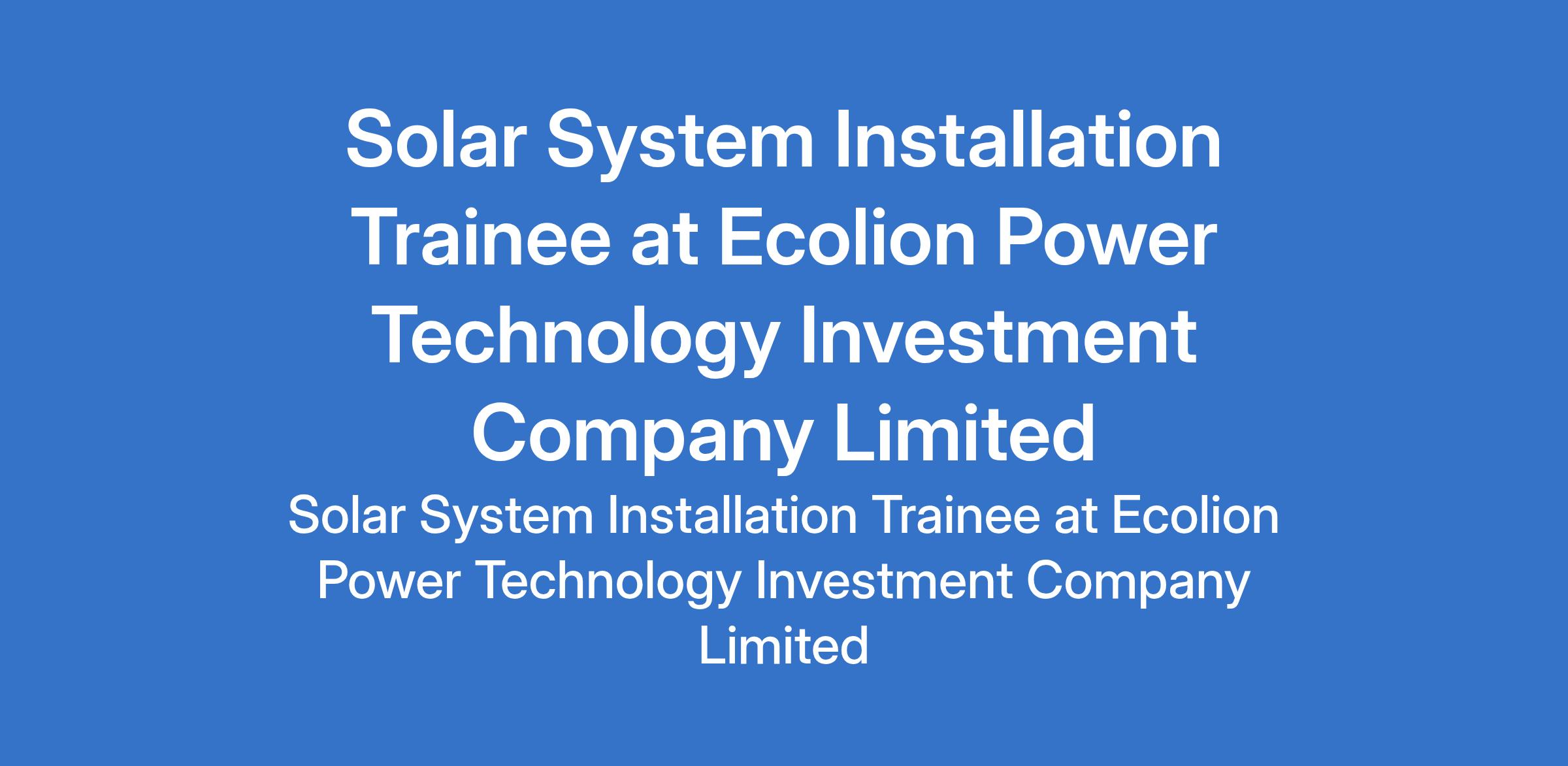 Ecolion Power Technology Investment Company Limited is recruiting to fill the position of: Solar System Installation Trainee. Interested candidates should be Nigerians, aged 18-35, with high school or above education, a strong interest in the solar new energy industry and willingness to work in the field for a long time. Free professional training and entrepreneurial employment opportunities will be provided.