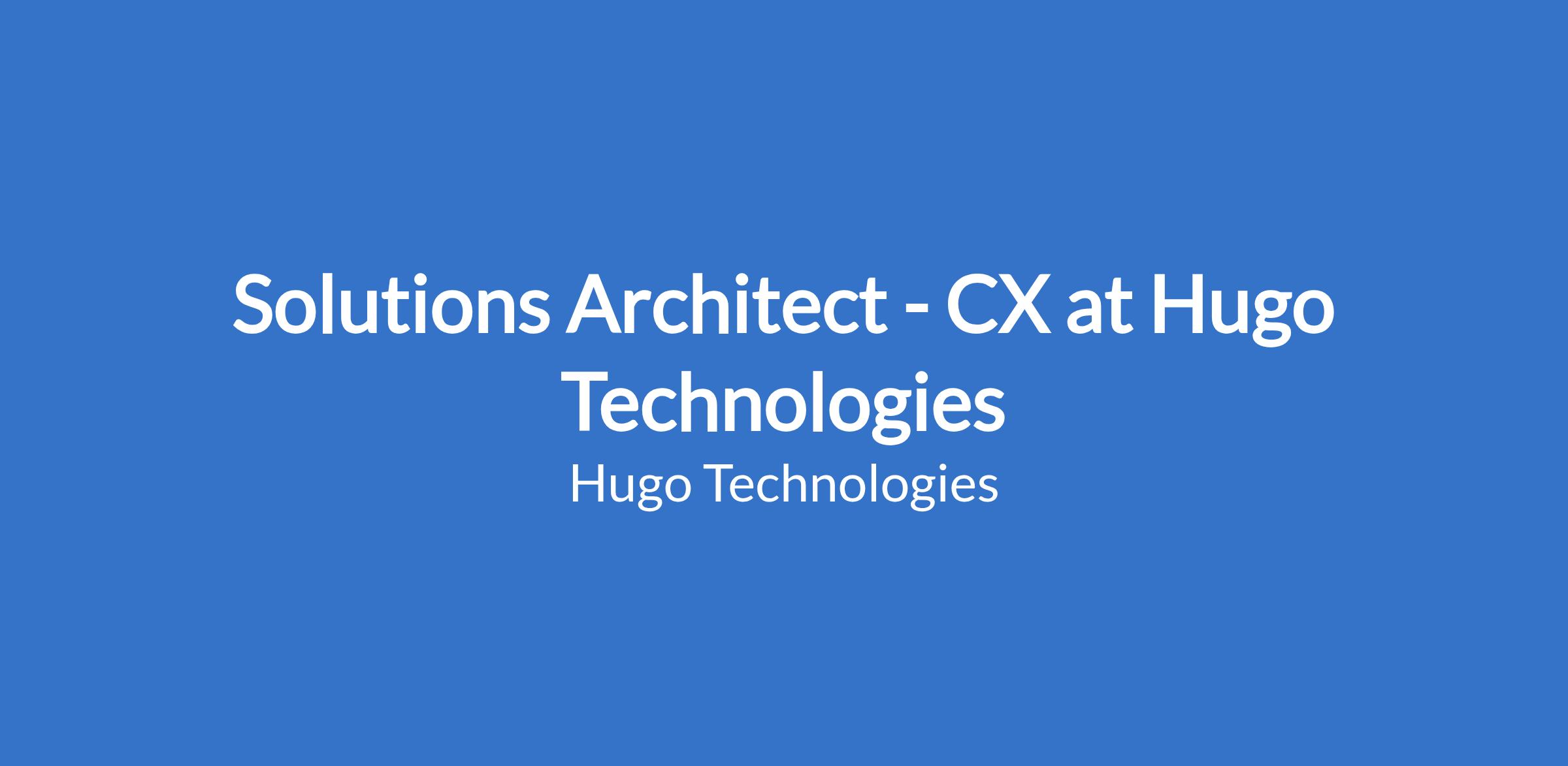 The Solutions Architect will design and prototype technical solutions that improve CX delivery, reduce cost, and enable new revenue streams at Hugo.