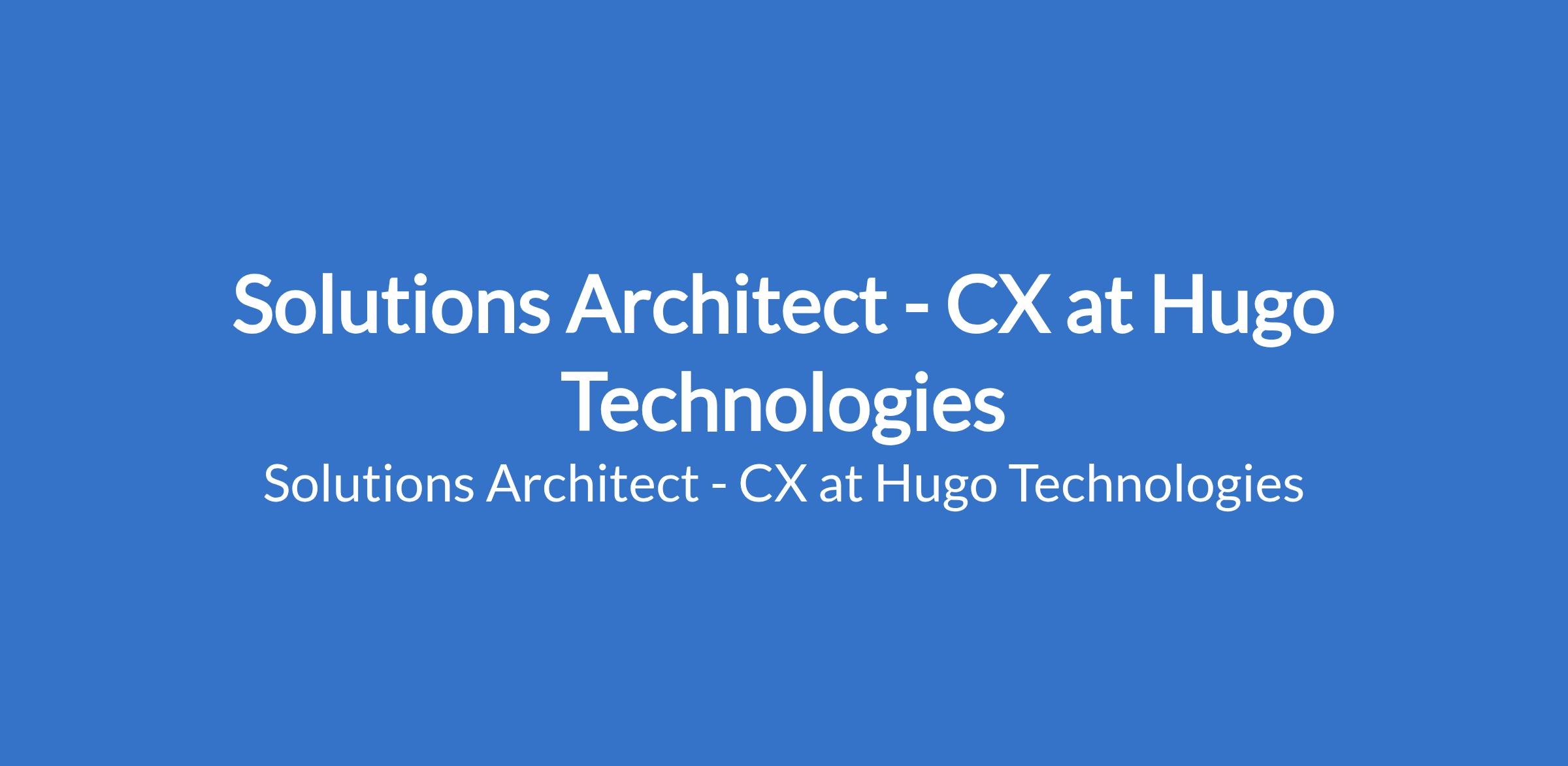 Solutions Architect - CX at Hugo Technologies
