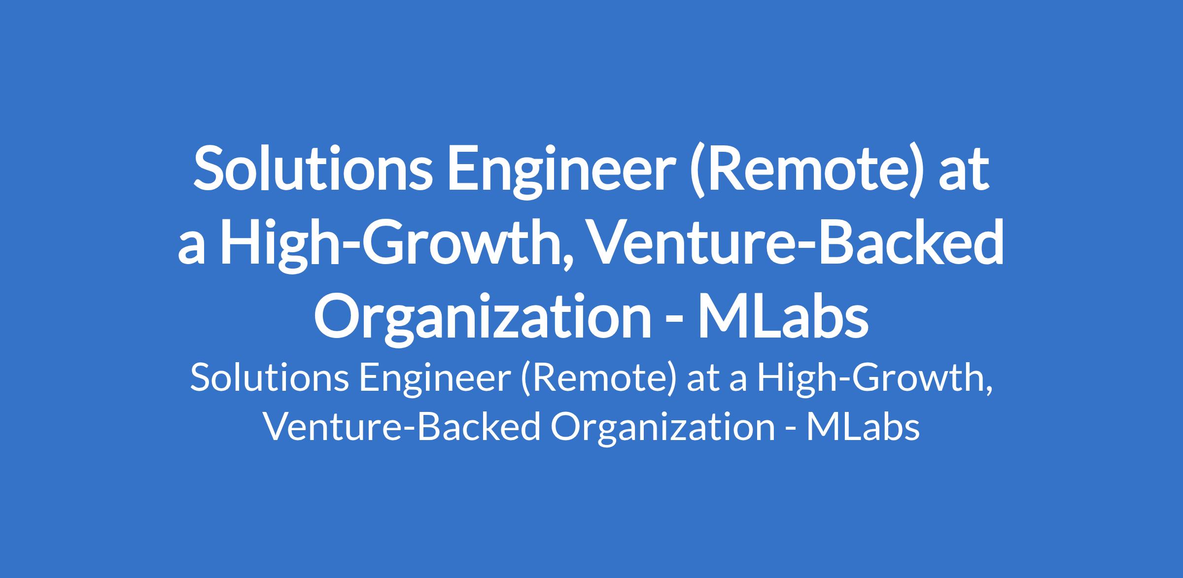 MLabs - Our client, a high-growth, venture-backed organization is recruiting to fill the position of: Solutions Engineer. This is a Remote Job. Interested candidates should possess relevant qualifications with prior experience in software development, systems engineering, or DevOps and must be based within the EMEA region (remote).