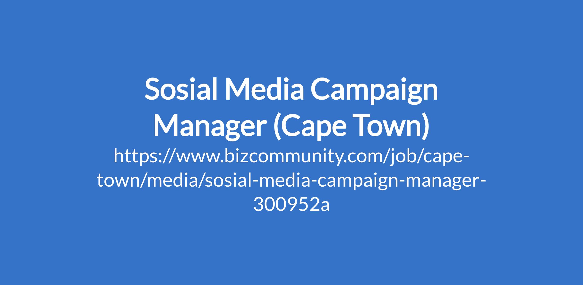 Sosial Media Campaign Manager (Cape Town)
