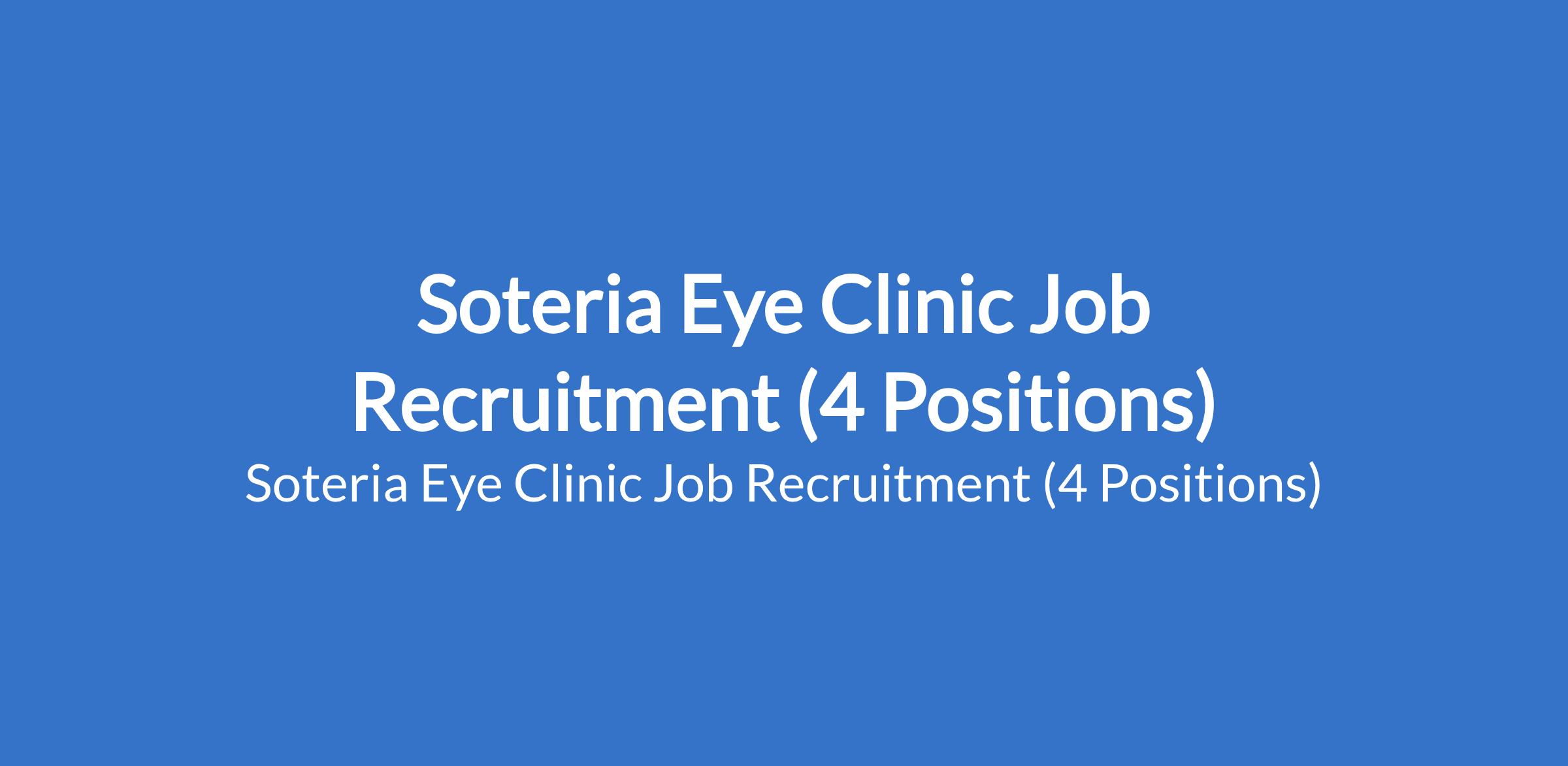 Soteria Eye Clinic Job Recruitment (4 Positions)