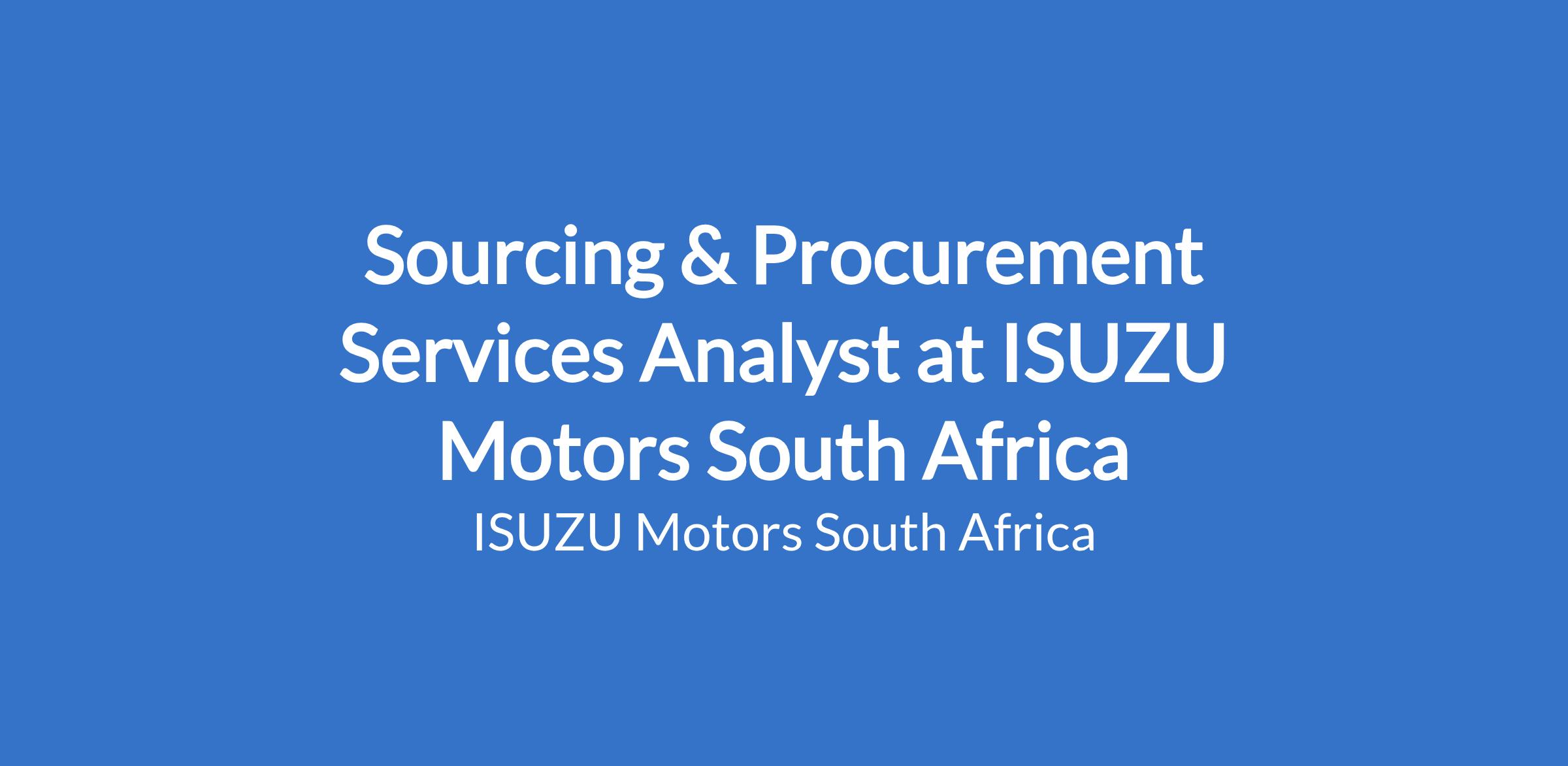 In support of IMSAf's ongoing efforts to enhance organisational performance and provide employee development opportunities, the company is pleased to invite applications for a Sourcing and Procurement Services Analyst in the Procurement and Logistics Department.