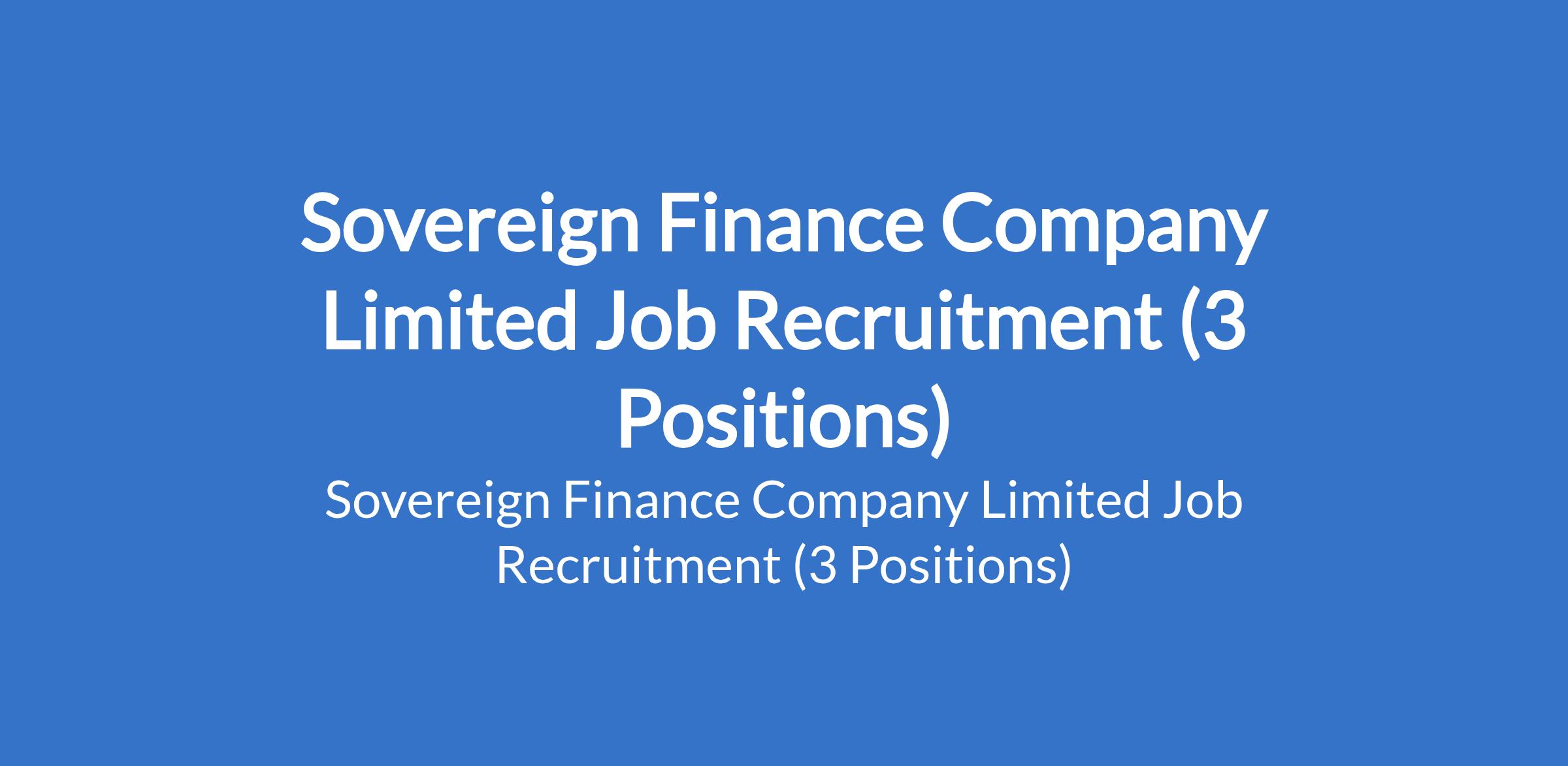 Sovereign Finance Company Limited Job Recruitment (3 Positions)