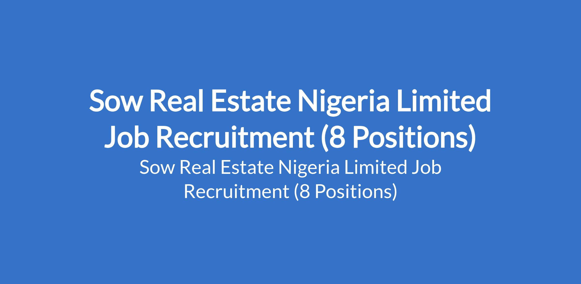 Sow Real Estate Nigeria Limited Job Recruitment (8 Positions)
