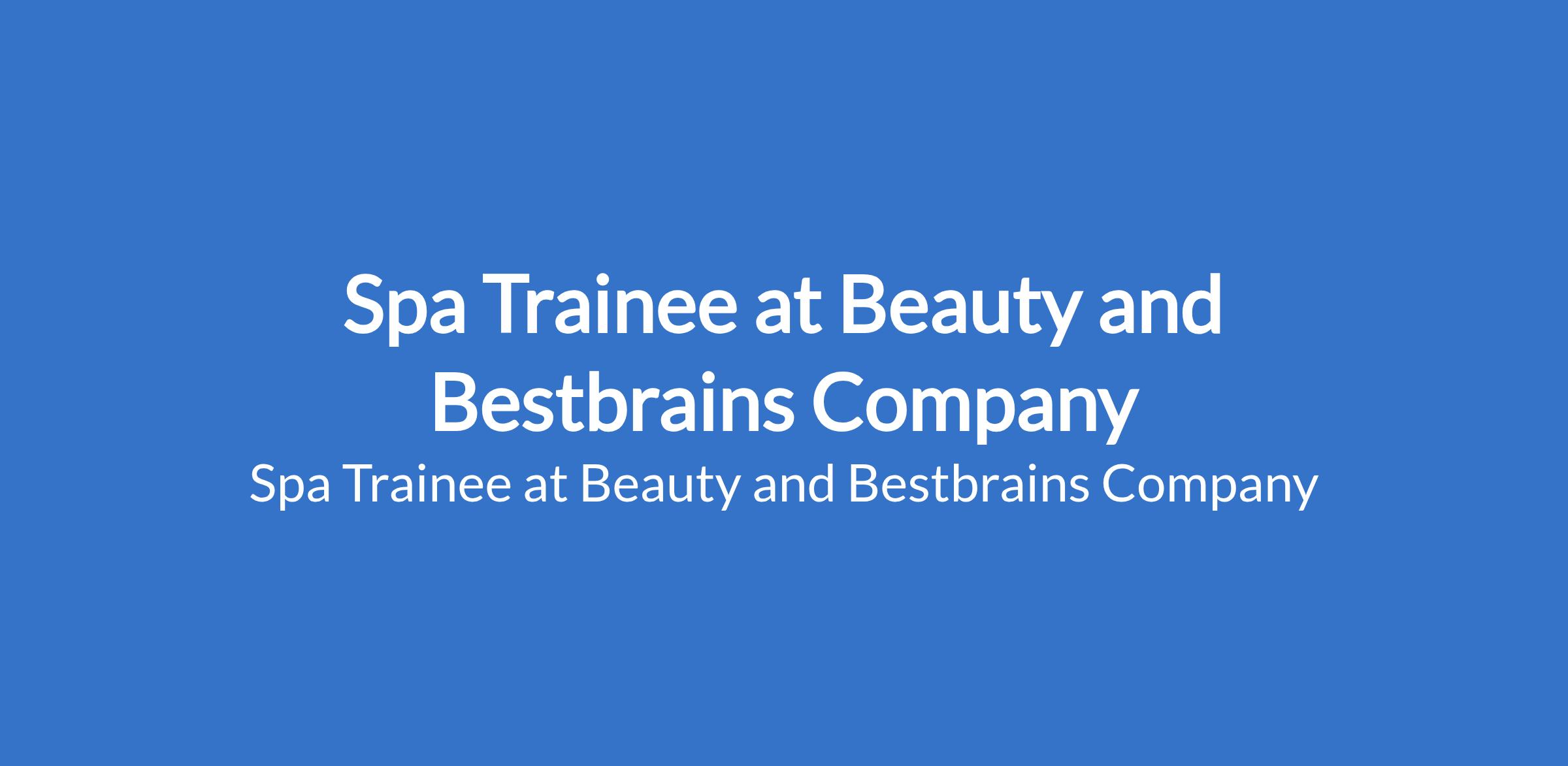 Spa Trainee at Beauty and Bestbrains Company