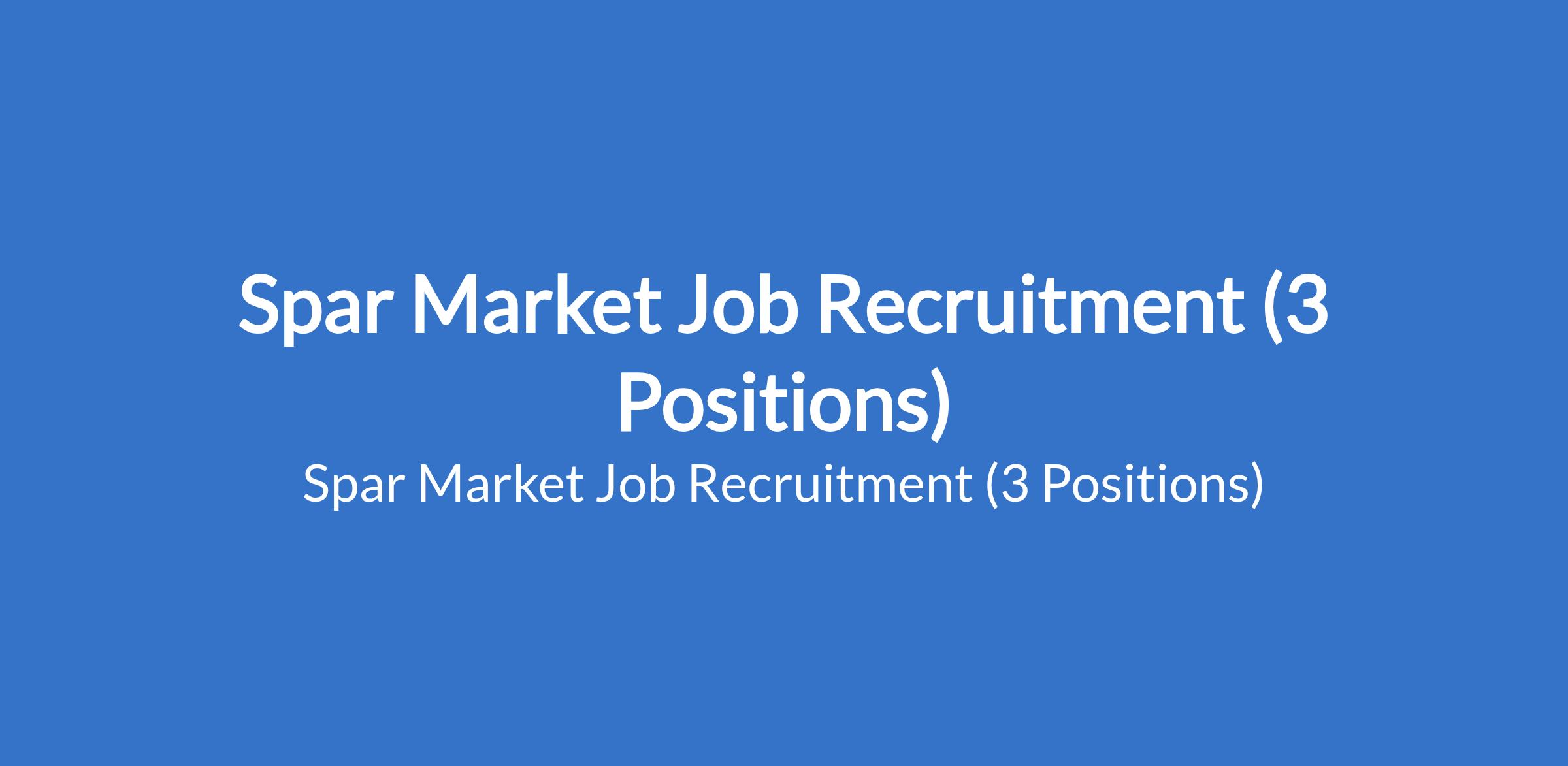 Spar Market Job Recruitment (3 Positions)