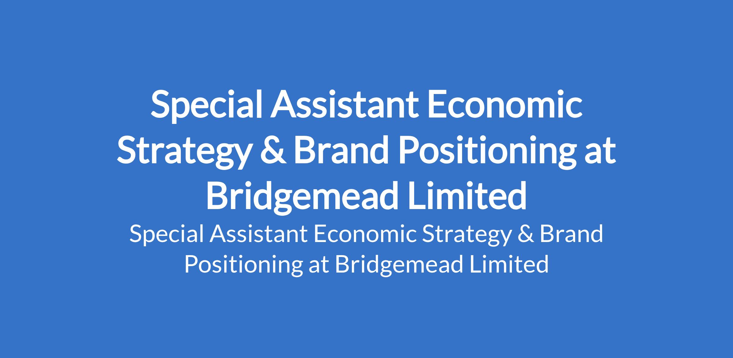 Bridgemead Limited is recruiting to fill the position of: Special Assistant Economic Strategy & Brand Positioning. The position is located in Lagos State. Interested candidates should possess a Bachelors Degree in Economics, Public Policy, Business Administration, Development Studies, or related field with experience in strategy, policy, economic advisory, or institutional support roles and must be willing to travel.