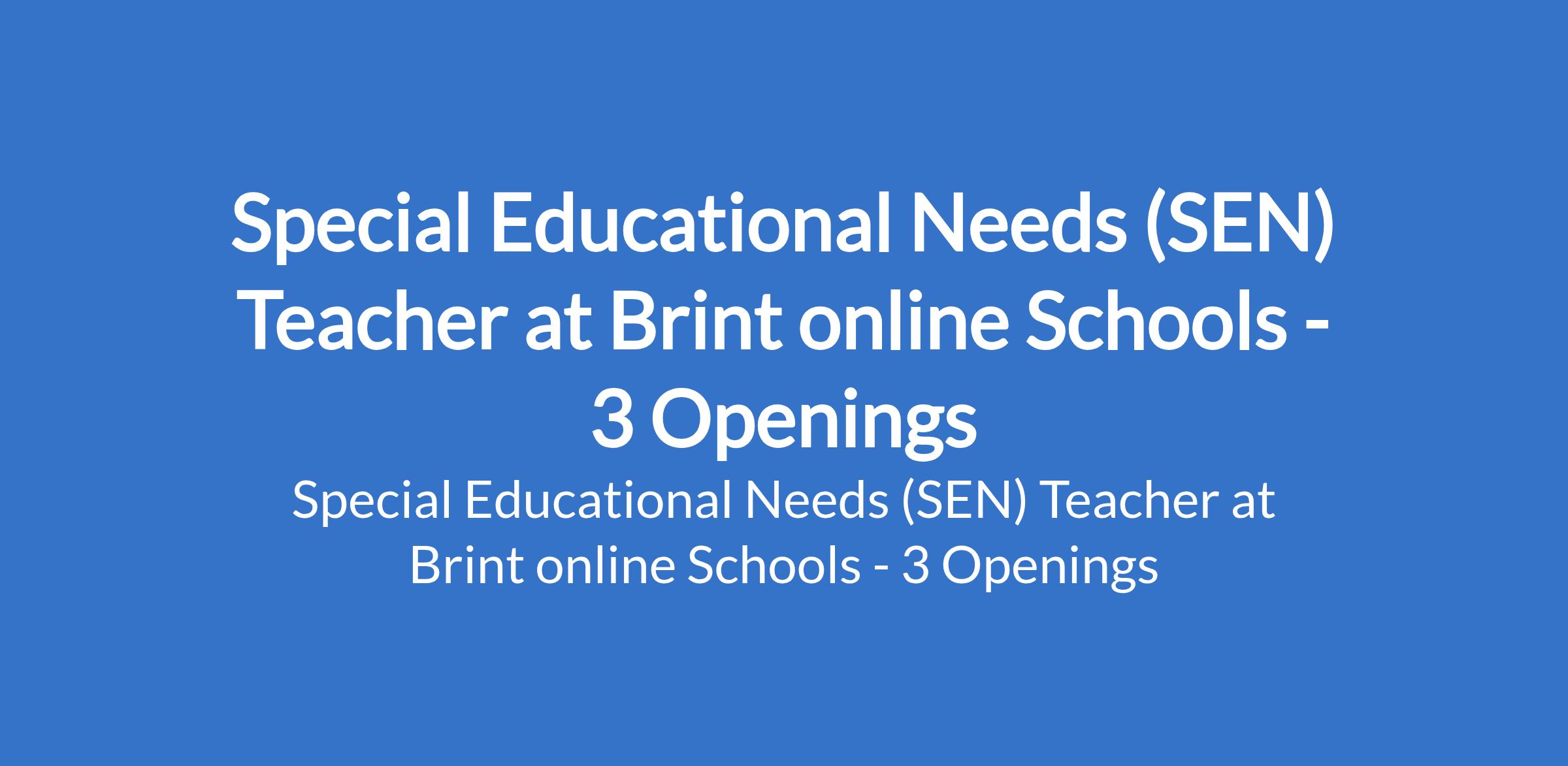 Special Educational Needs (SEN) Teacher at Brint online Schools - 3 Openings