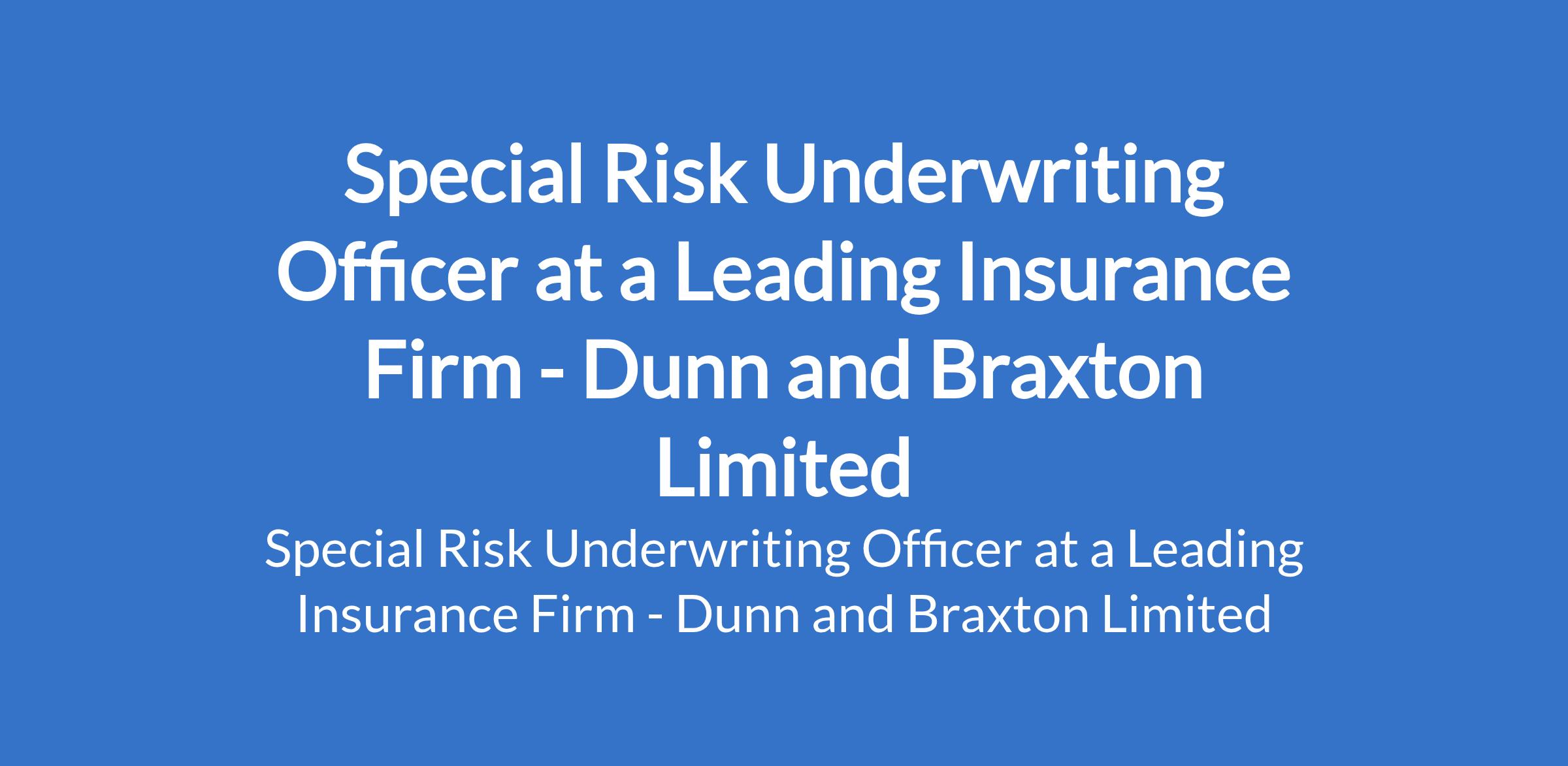 Dunn and Braxton Limited - Our client, a leading Insurance Firm is recruiting to fill the position of: Special Risk Underwriting Officer. The position is located in Obalende, Lagos State. Salary N190,000 monthly. Interested candidates should possess a Good First Degree in Insurance, Actuarial Science, or a related field with 0-1 years cognate experience in the insurance industry.