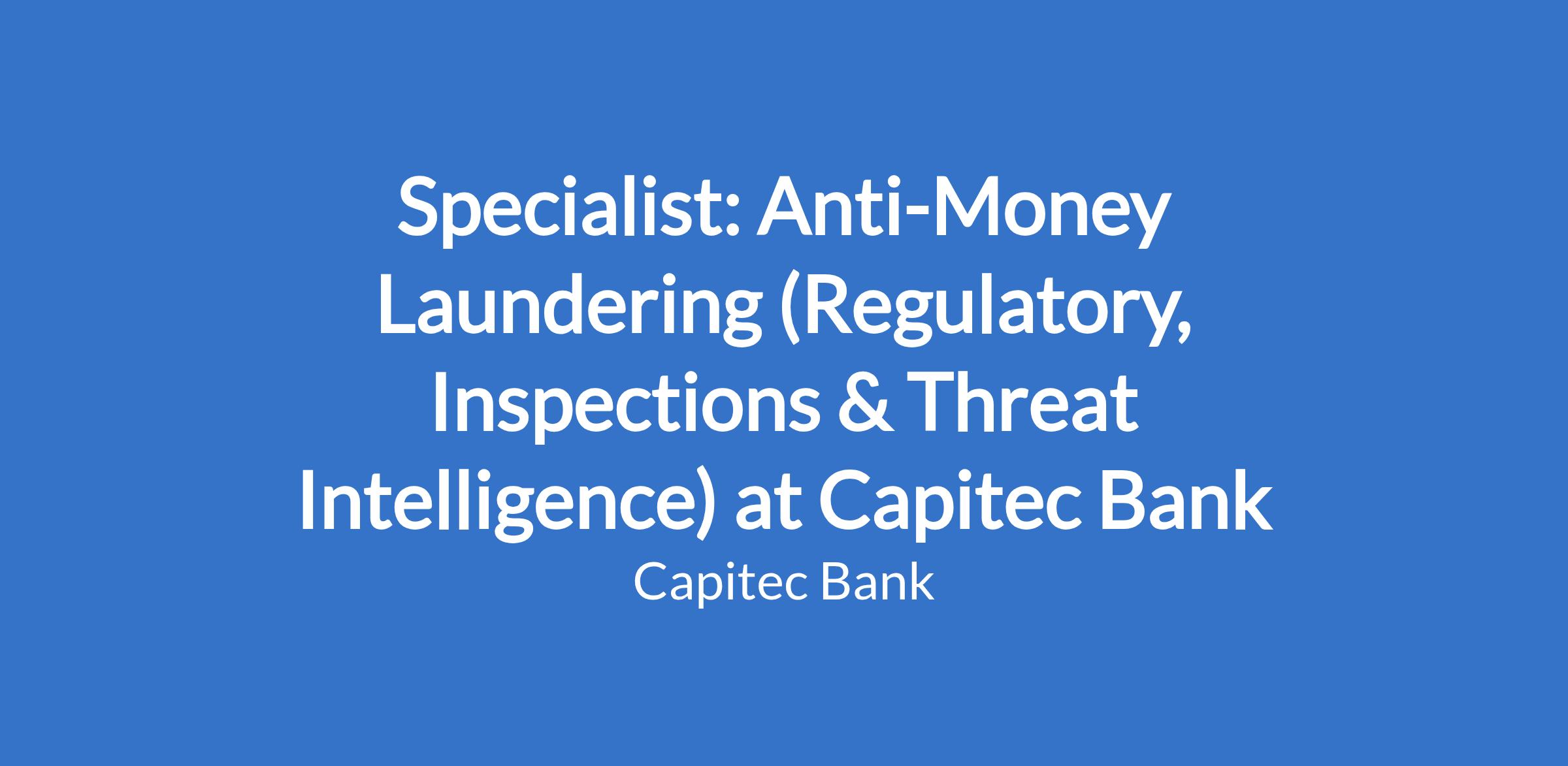 Specialist: Anti-Money Laundering (Regulatory, Inspections & Threat Intelligence) at Capitec Bank