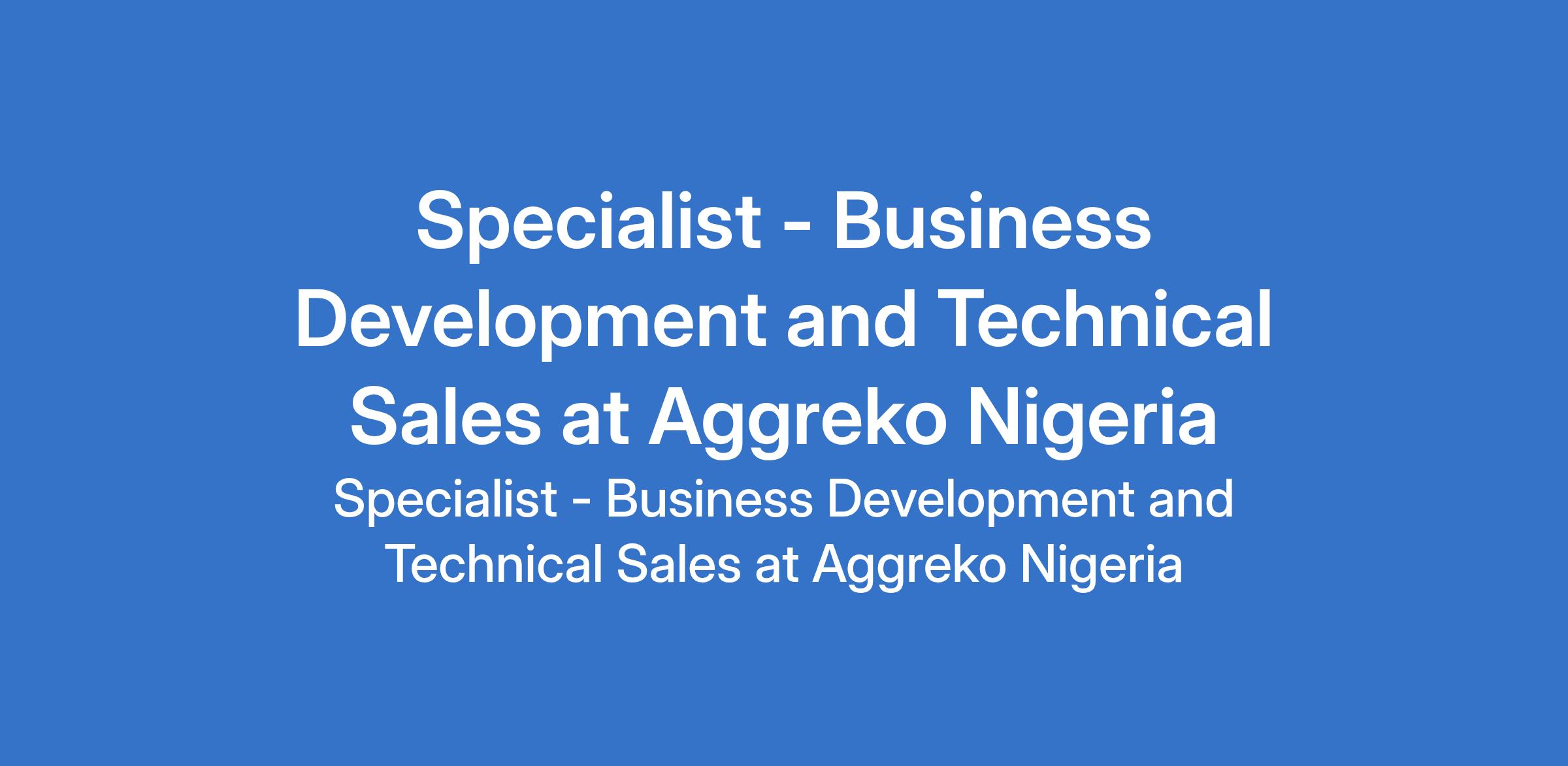 Aggreko Nigeria is recruiting to fill the position of: Specialist - Business Development and Technical Sales. The position is located in Lagos State. Interested candidates should possess a relevant qualification with proven track record in consistently meeting/exceeding sales targets.