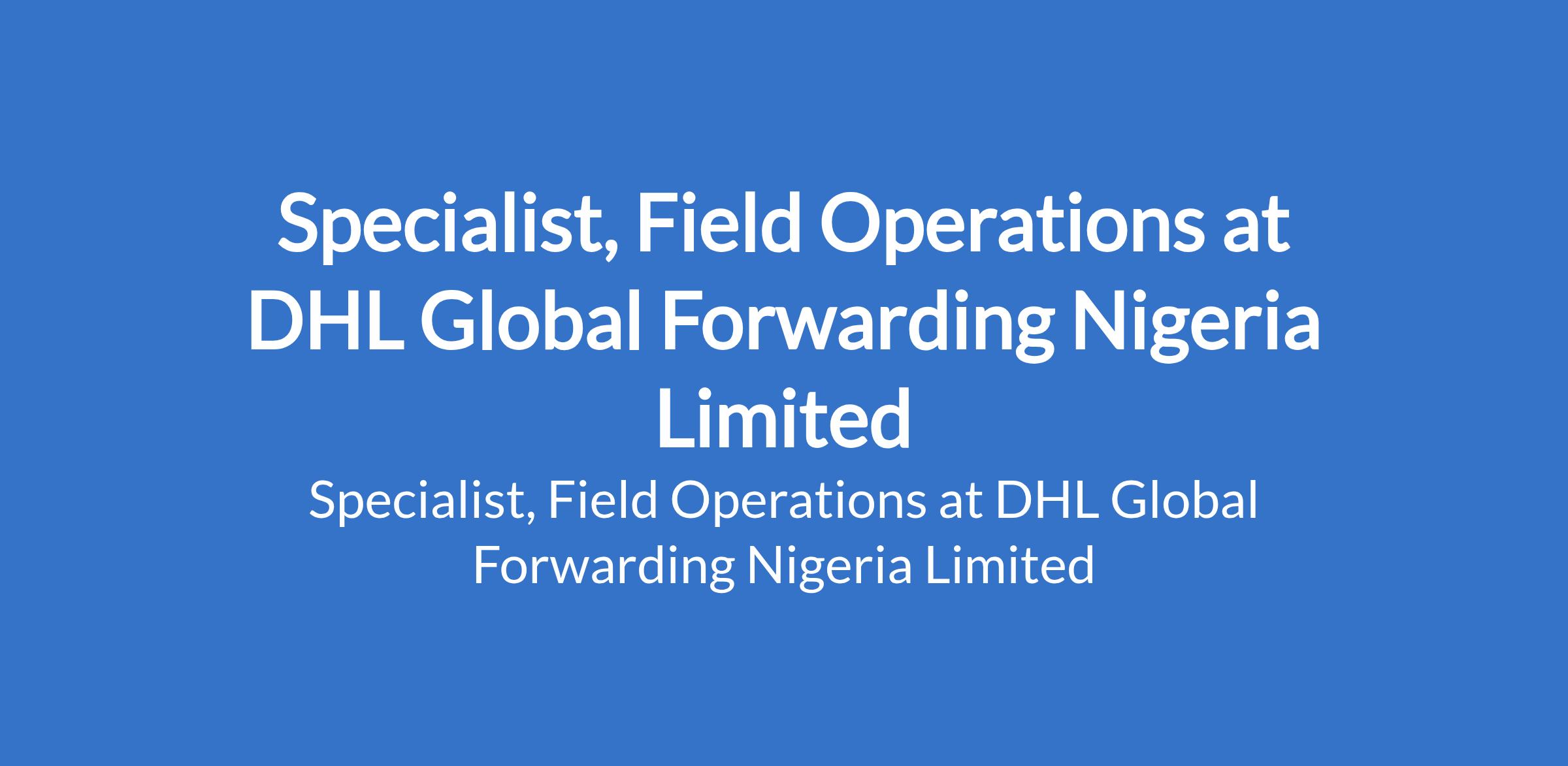 DHL Global Forwarding Nigeria Limited is recruiting to fill the position of: Specialist, Field Operations. The position is located in Muritala Muhammed Int`l Airport, Ikeja - Lagos State. Interested candidates should possess a University Degree in Engineering, Economics, or Science or equivalent practical education with 3+ years as business / data analyst role or higher