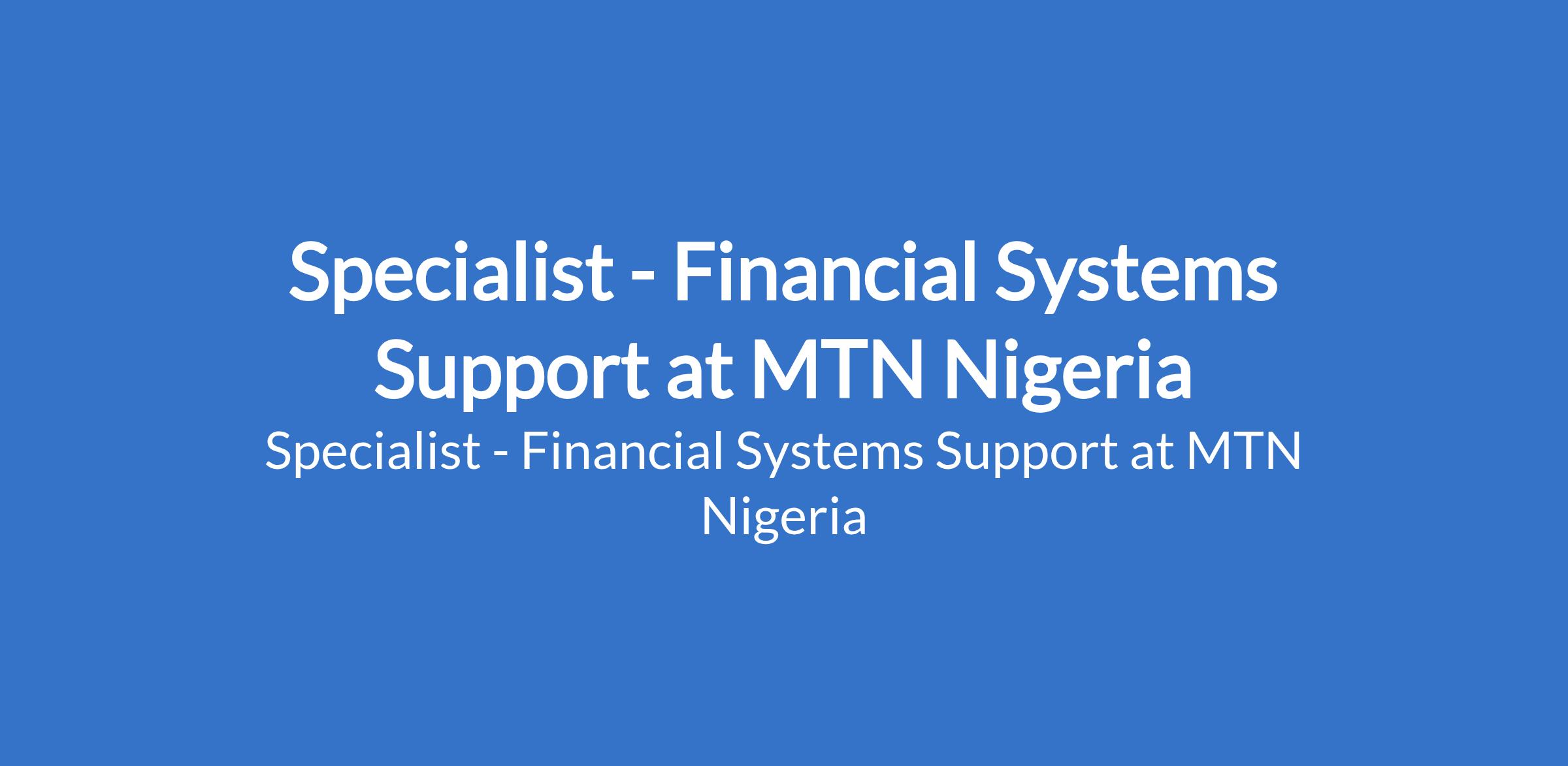 MTN Nigeria is recruiting to fill the position of: Specialist - Financial Systems Support. The position is located in Ikoyi, Lagos State. Interested candidates should possess a First Degree in any discipline with 3 - 7 years experience.