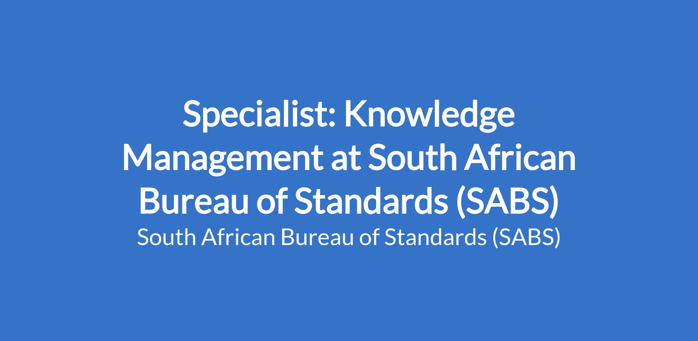 Understand the current SABS levels of strategic and operational capability and actively participate in the development of integrated and aligned knowledge management solutions that will bridge the gap between current and future state capabilities.