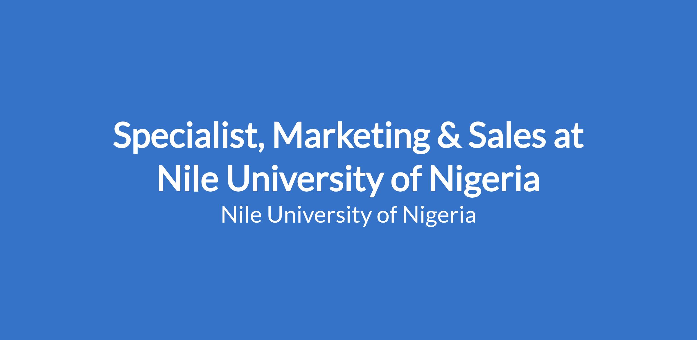 We are currently looking to engage a highly competent and result-oriented Specialist, Marketing and Sales (Lagos) with strong personal & professional integrity to join our dynamic team.