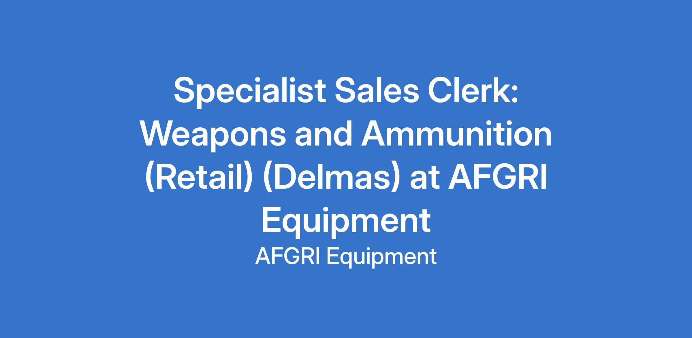 Specialist Sales Clerk: Weapons and Ammunition (Retail) (Delmas) at AFGRI Equipment