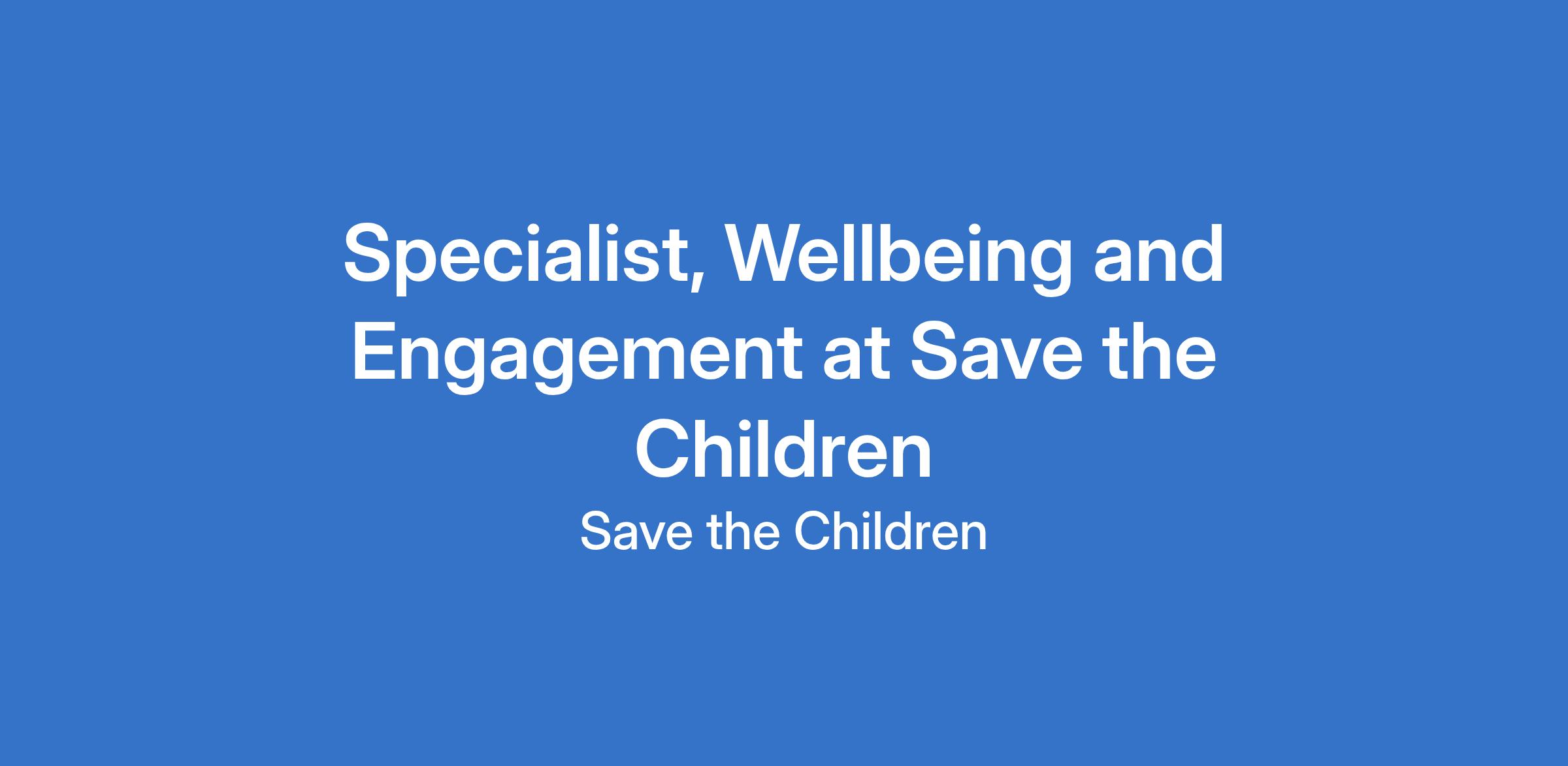 The Wellbeing and Engagement Specialist is responsible for designing, implementing and monitoring initiatives that enhance the health, wellbeing, and engagement of Save the Children's global workforce. This role ensures that staff wellbeing is prioritised and integrated into organisational practices, enabling employees to thrive and perform at their best. Working collaboratively with internal stakeholders and partners, the Specialist focuses on addressing key areas such as mental health, resilience, engagement, and inclusivity. They play a pivotal role in evaluating the effectiveness of wellbeing strategies and fostering a workplace culture that supports physical, emotional, and mental health.