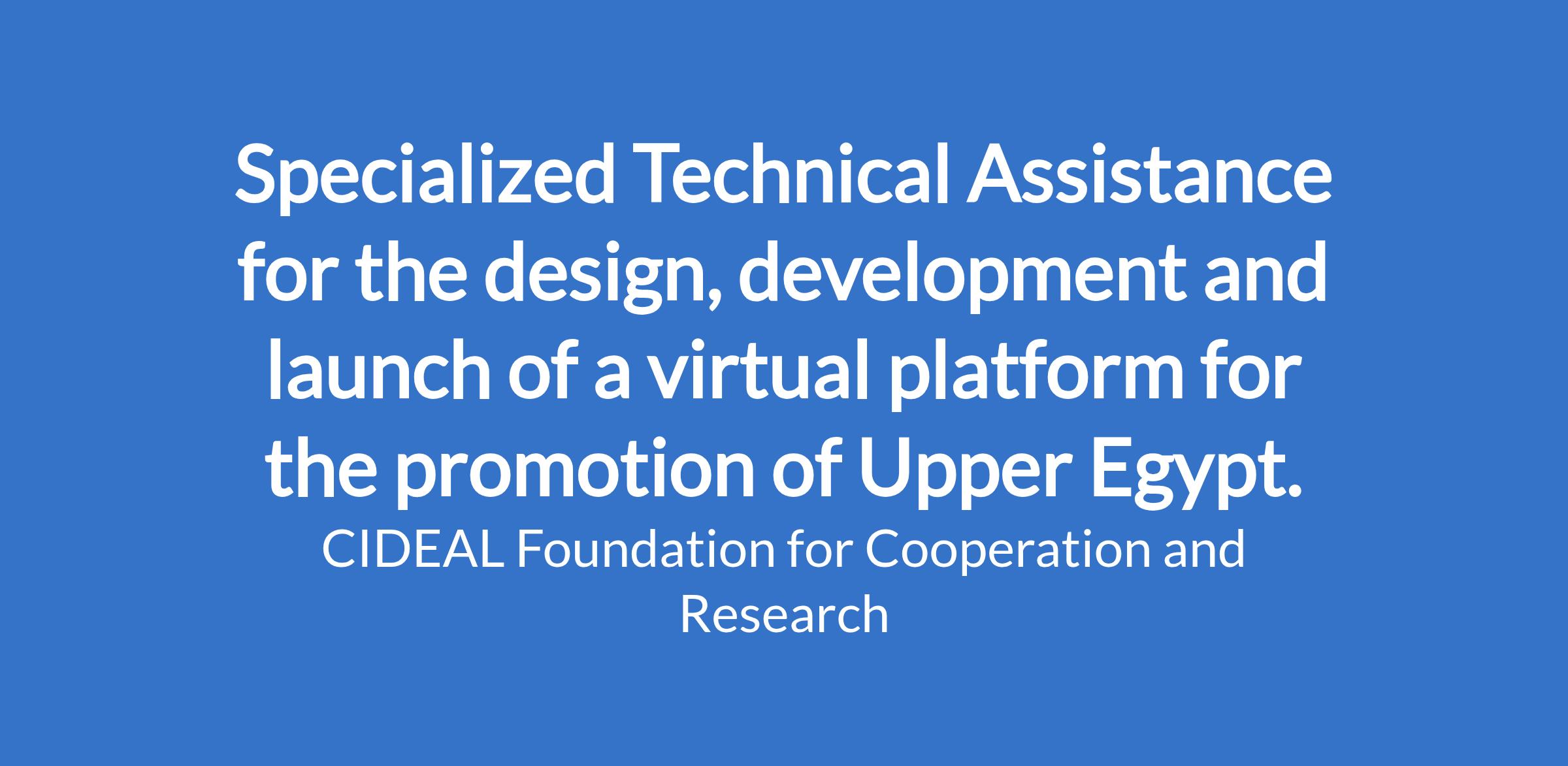 Within the framework of the program Promotion of Sustainable Economic and Social Alternatives Based on Tourism in Upper Egypt with a Special Focus on Women and Youth implemented by CIDEAL Foundation with financial support from the Spanish Agency for International Development Cooperation (AECID), a specialized technical assistance is required for the design, development and launch of a digital platform aimed at promoting sustainable tourism in destinations of Upper Egypt.