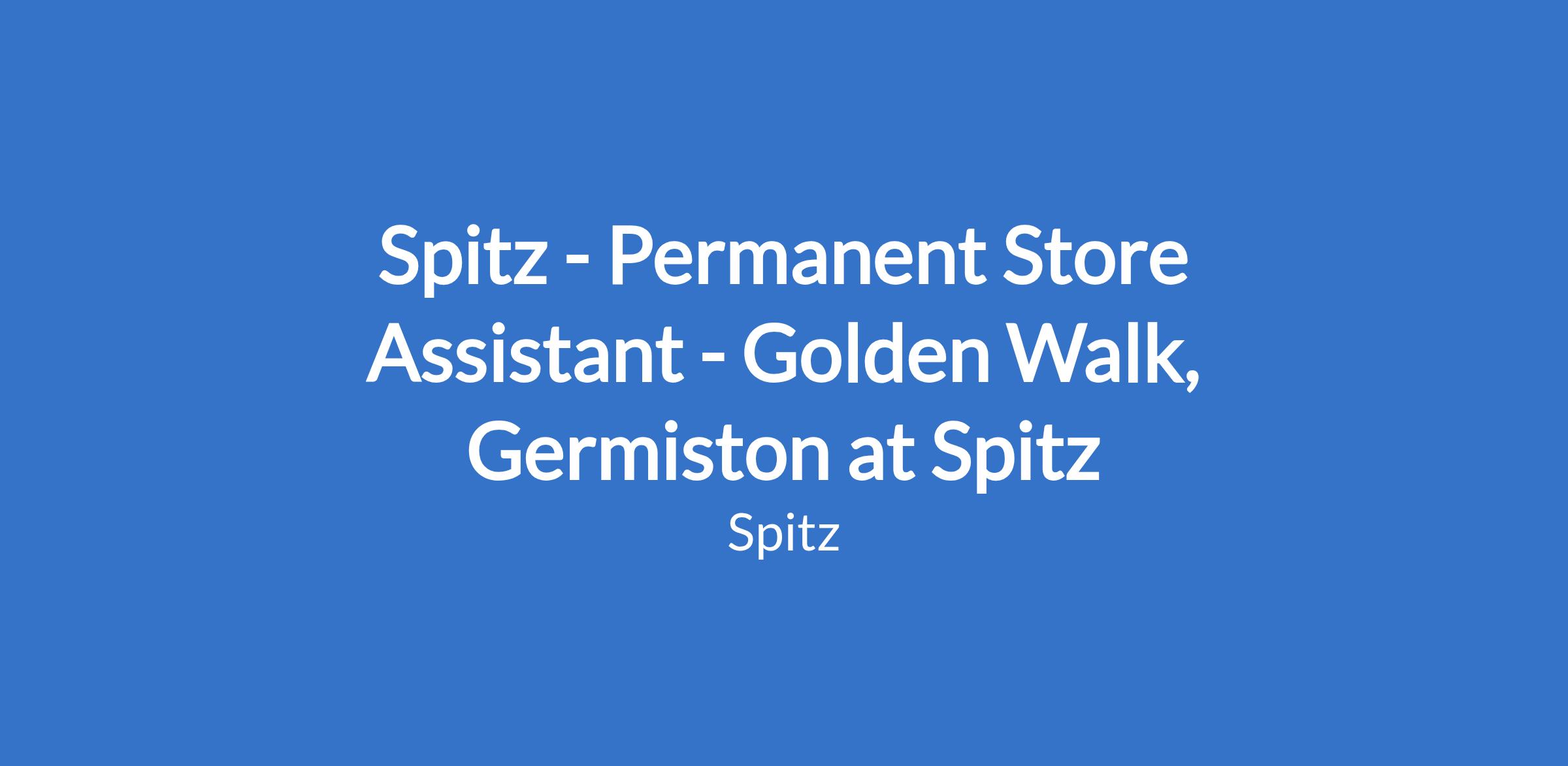 Spitz - Permanent Store Assistant - Golden Walk, Germiston at Spitz