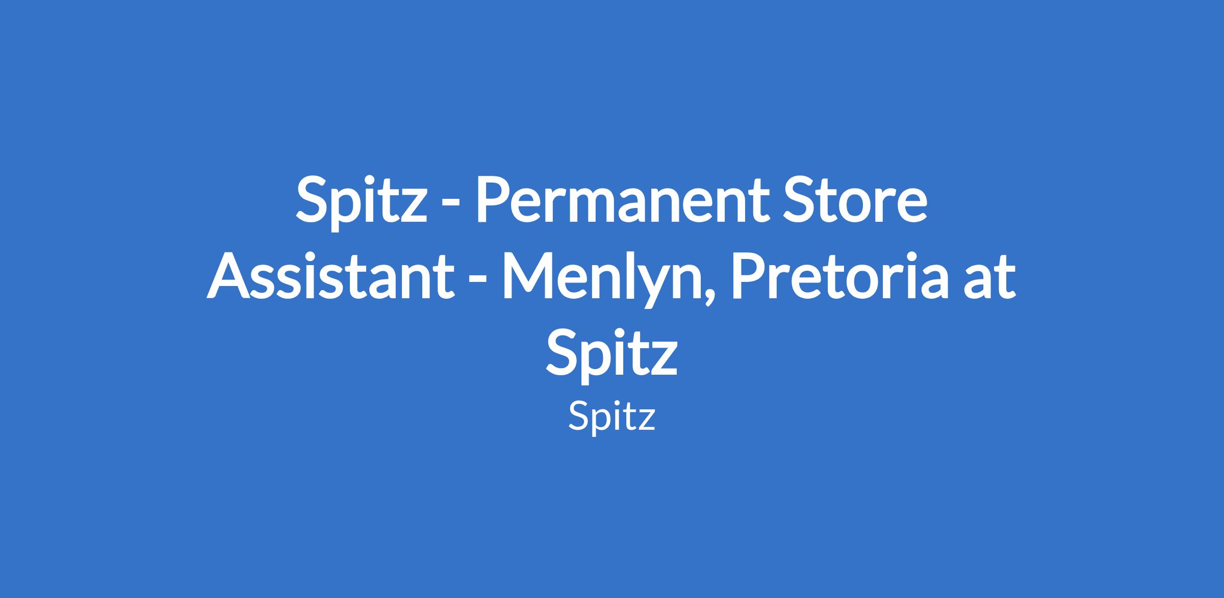 Spitz - Permanent Store Assistant - Menlyn, Pretoria at Spitz