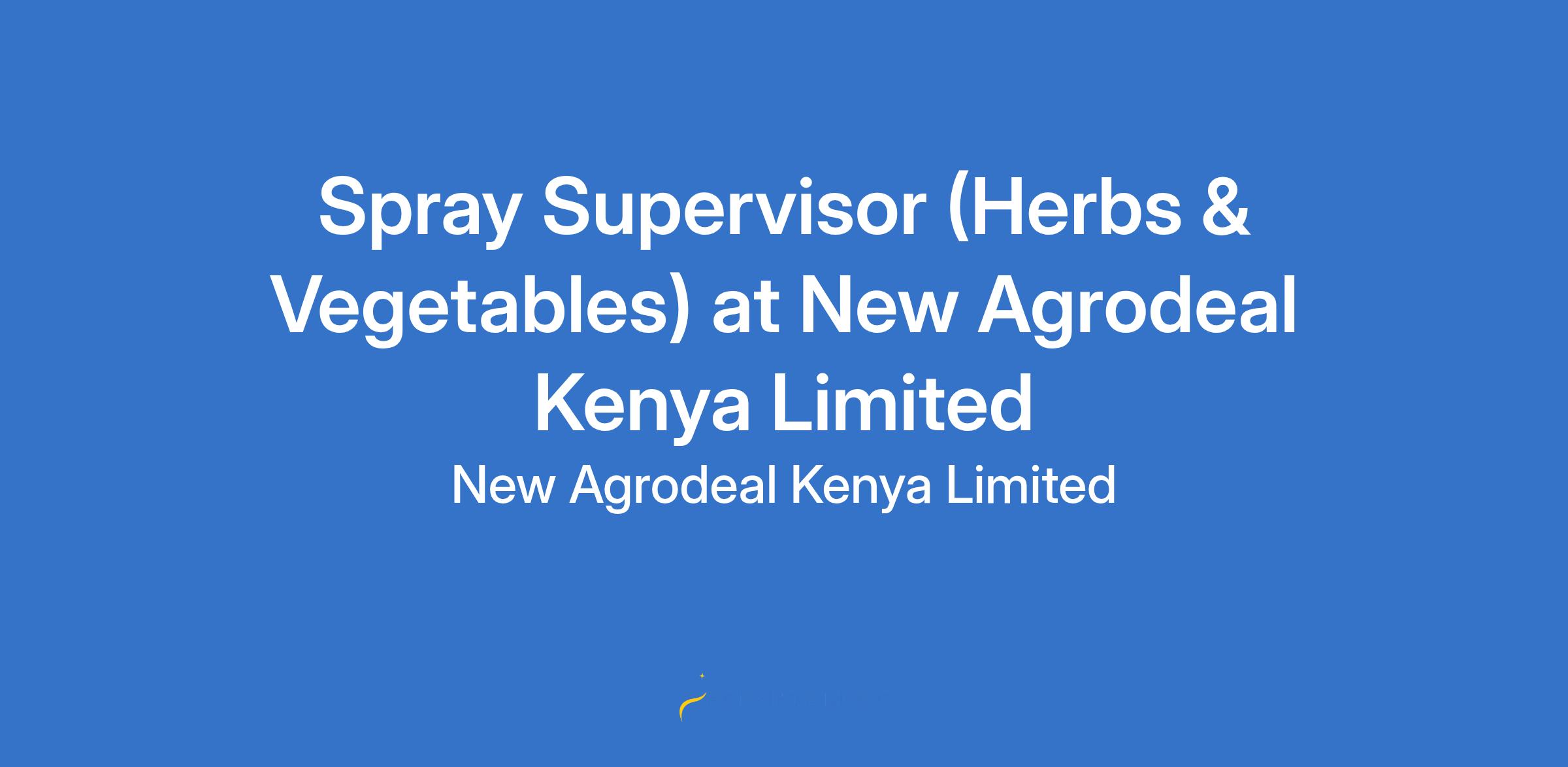 Spray Supervisor (Herbs & Vegetables) at New Agrodeal Kenya Limited