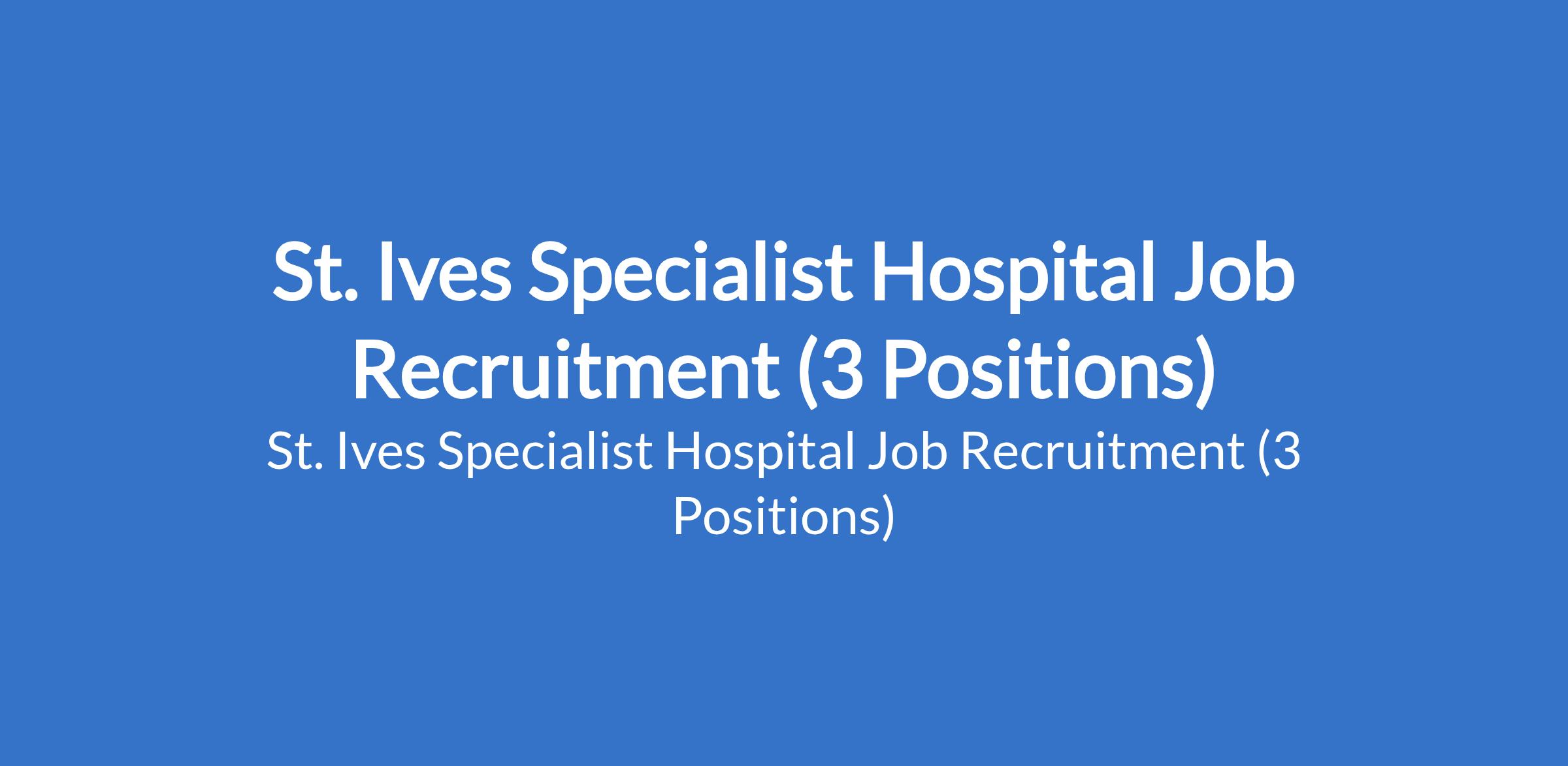St. Ives Specialist Hospital Job Recruitment (3 Positions)
