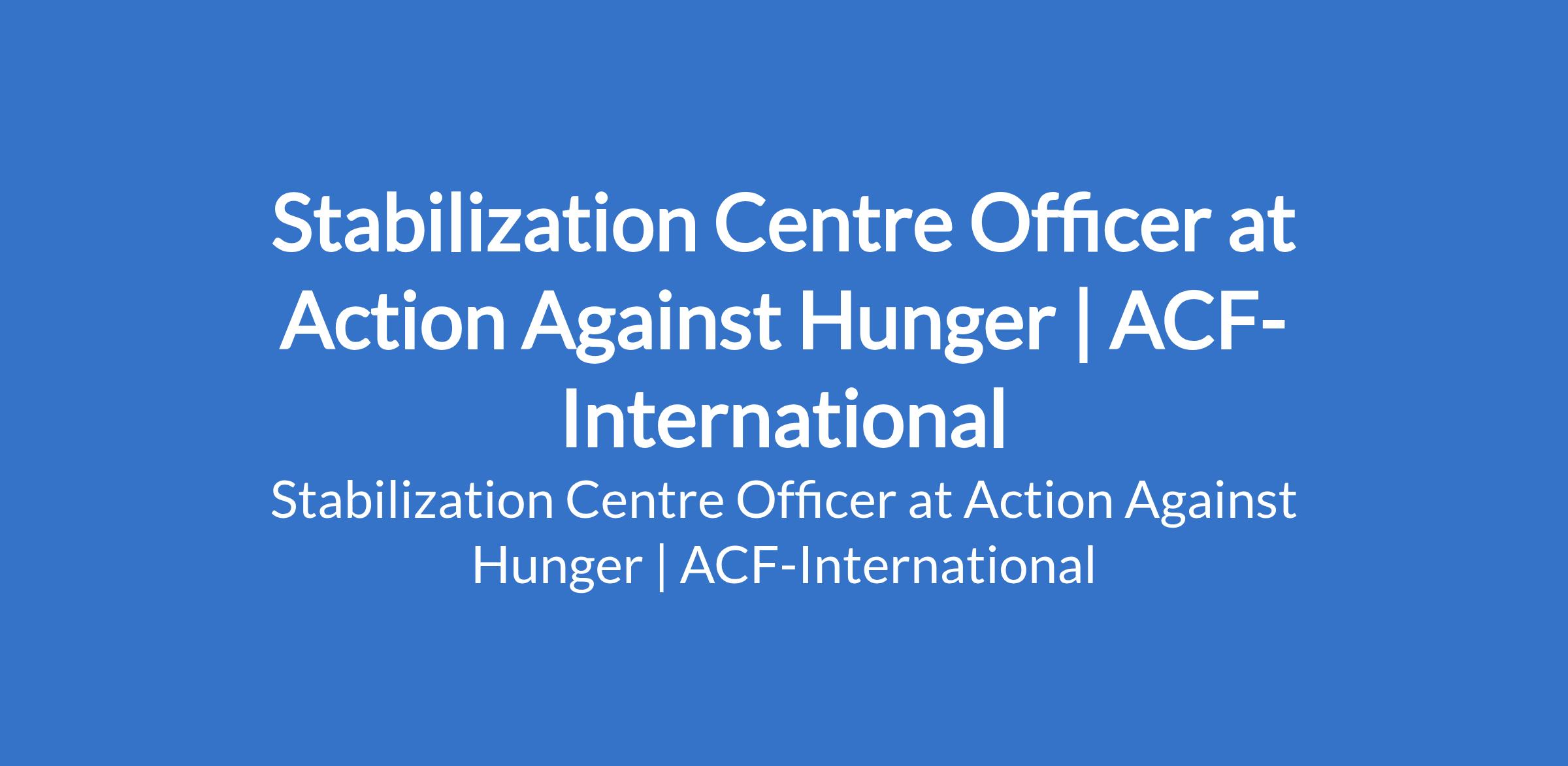 Action Against Hunger | ACF-International is recruiting to fill the position of: Stabilization Centre Officer. The position is located in Damasak, Borno State. Interested candidates should possess a Bachelors Degree in Nursing, Midwifery, Medicine, Public Health or other relevant qualifications with experience in Public Health and CMAM programming.