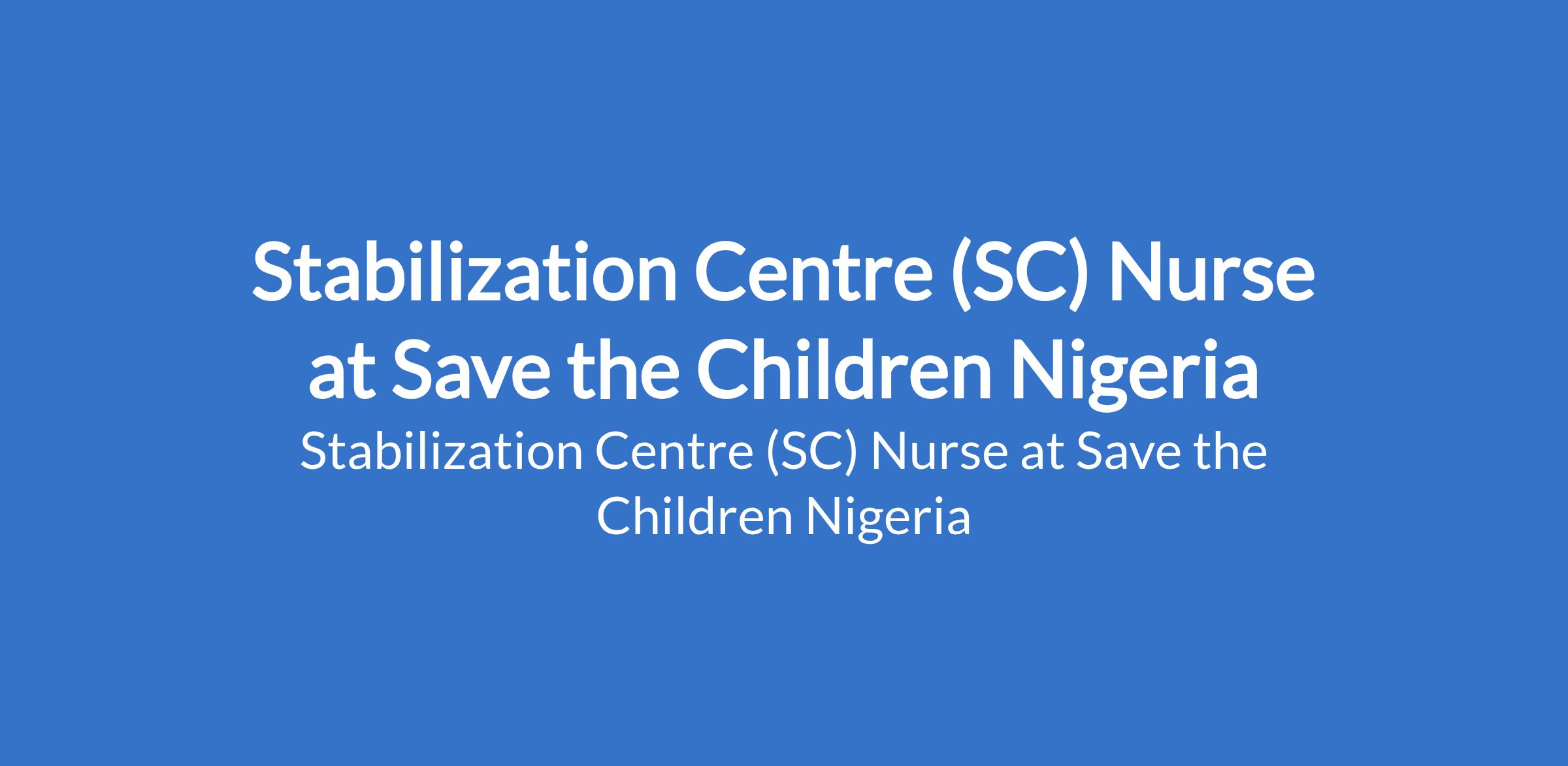 Save the Children Nigeria is recruiting to fill the position of: Stabilization Centre (SC) Nurse. The Position is located in Yobe State. Interested candidates should possess a Degree or Diploma in General Nursing with at least three years post-graduation experience.