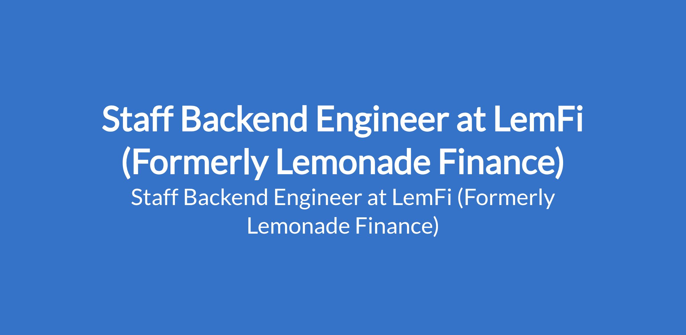 LemFi (Formerly Lemonade Finance) is recruiting to fill the position of: Staff Backend Engineer. Interested candidates candidates should possess a Degree in Computer Science or previous experience in the FinTech/Banking domain with 7+ years of experience building scalable, production-grade distributed systems.