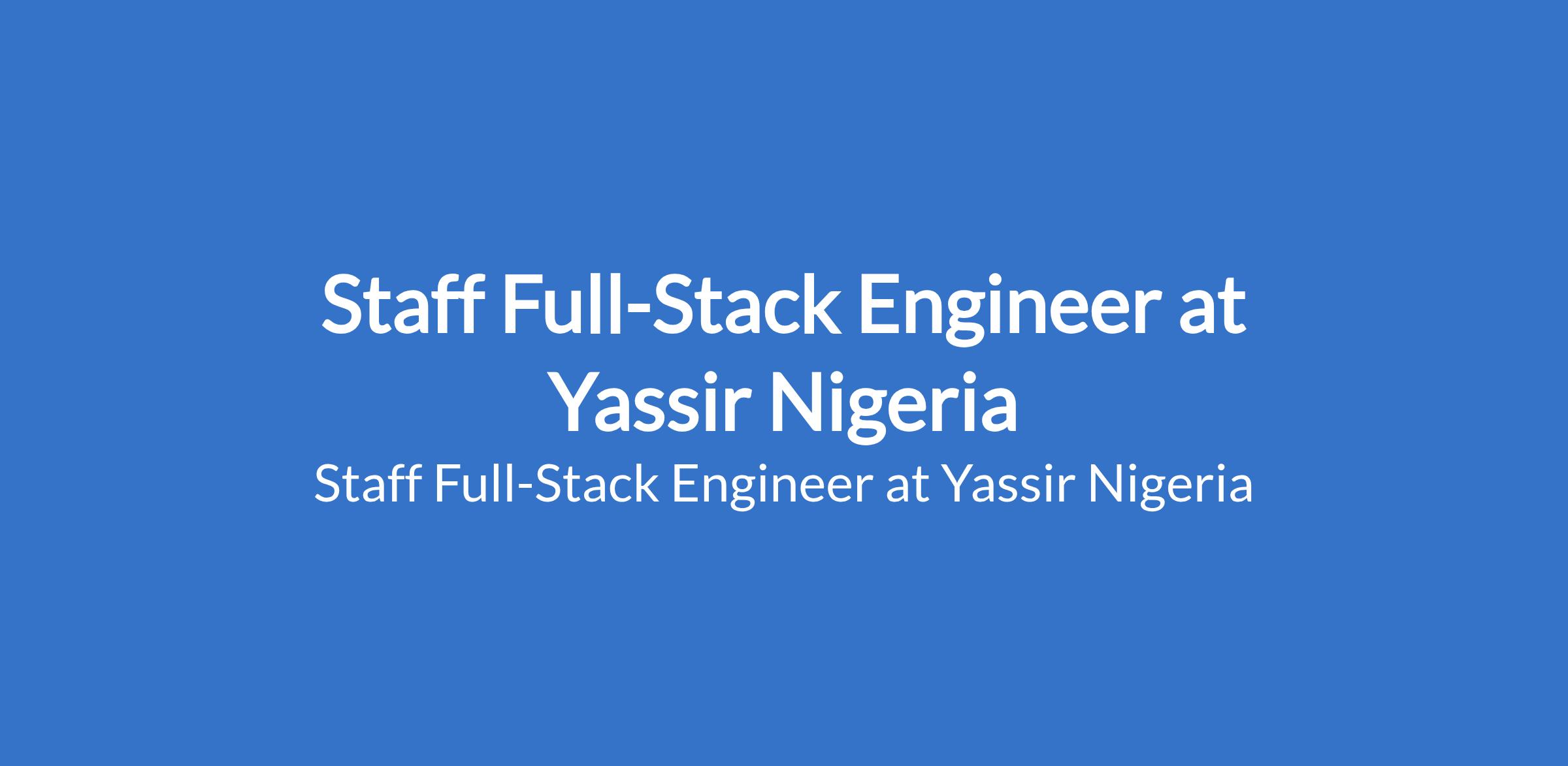 Yassir Nigeria is recruiting to fill the position of: Staff Full-Stack Engineer. The position is located in Lagos State. Interested candidates should possess relevant qualifications with at least 10 years of experience in backend engineering with NodeJS.