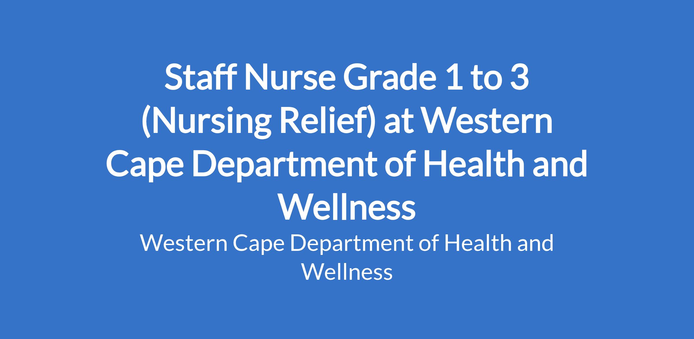 Grade 1: None Grade 2: A minimum of 10 years appropriate/recognisable nursing experience after registration with the SANC as Staff Nurse. Grade 3: A minimum of 20 years appropriate/recognizable experience in nursing after registration with the SANC as Staff Nurse.