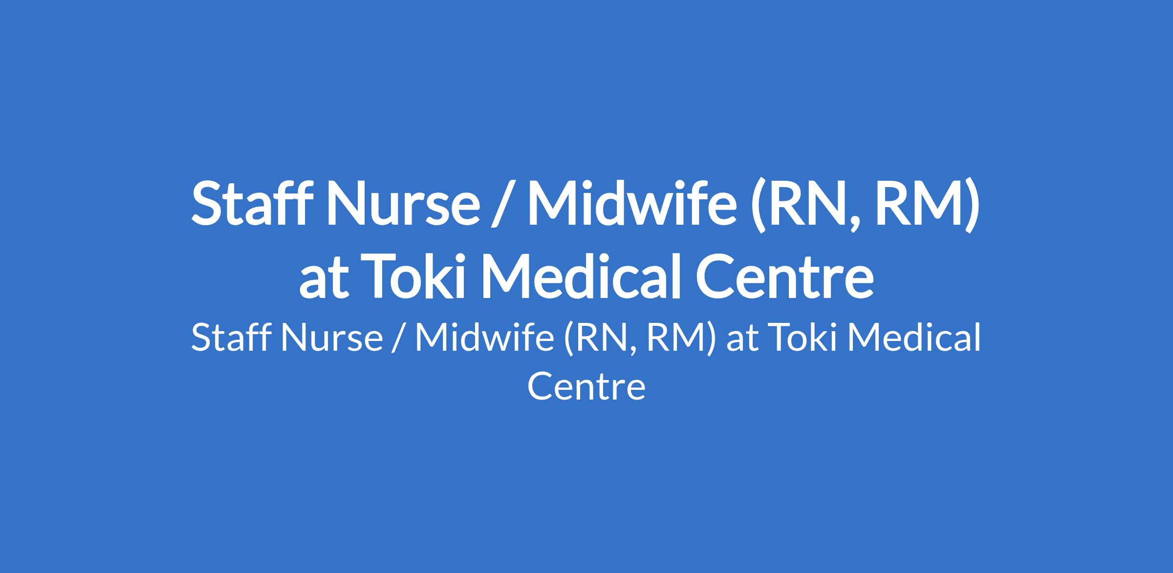 Staff Nurse / Midwife (RN, RM) at Toki Medical Centre