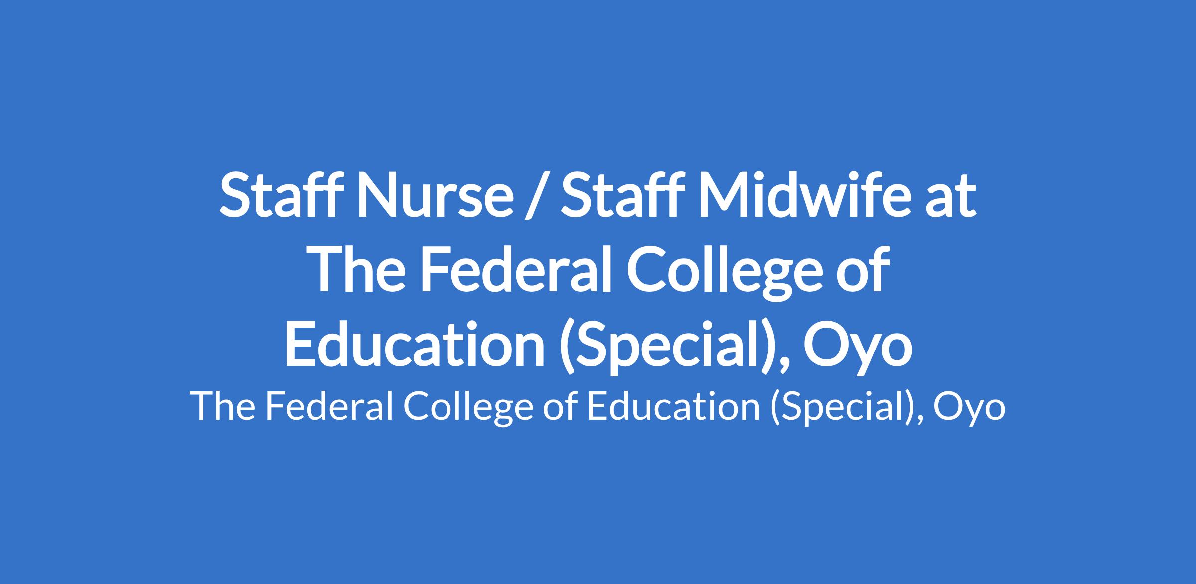 Staff Nurse / Staff Midwife at The Federal College of Education (Special), Oyo