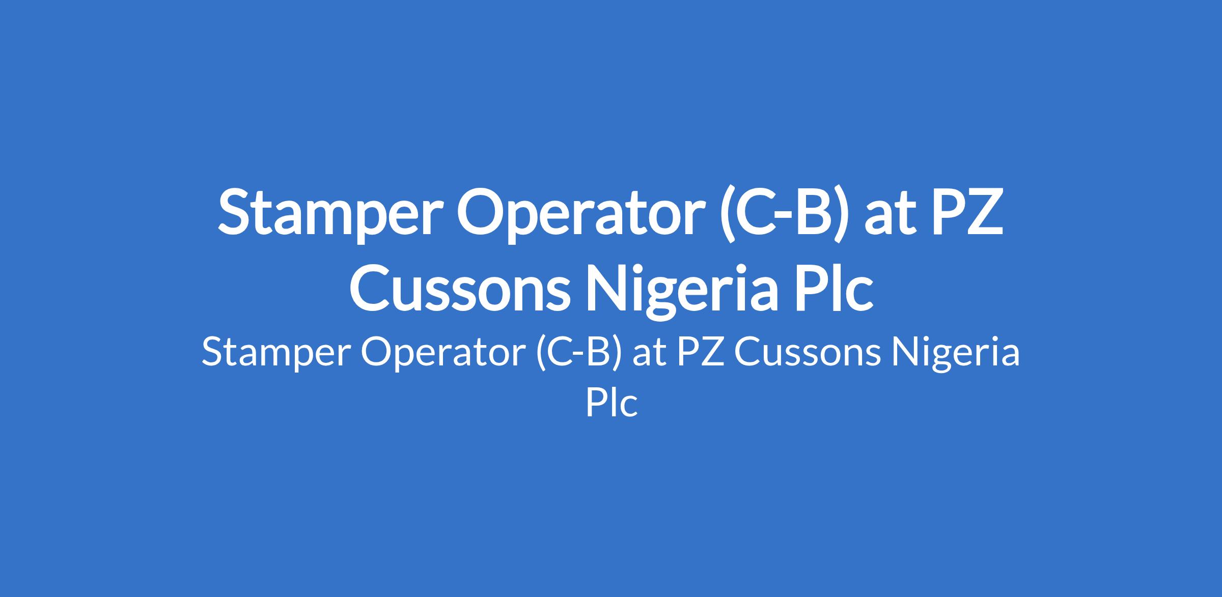 PZ Cussons Nigeria Plc is recruiting to fill the position of: Stamper Operator (C-B). The position is located in Aba, Abia State. Interested candidates should possess an NABTEB / ND qualification in Engineering related disciplines with a minimum of 1 year work experience in a similar position.