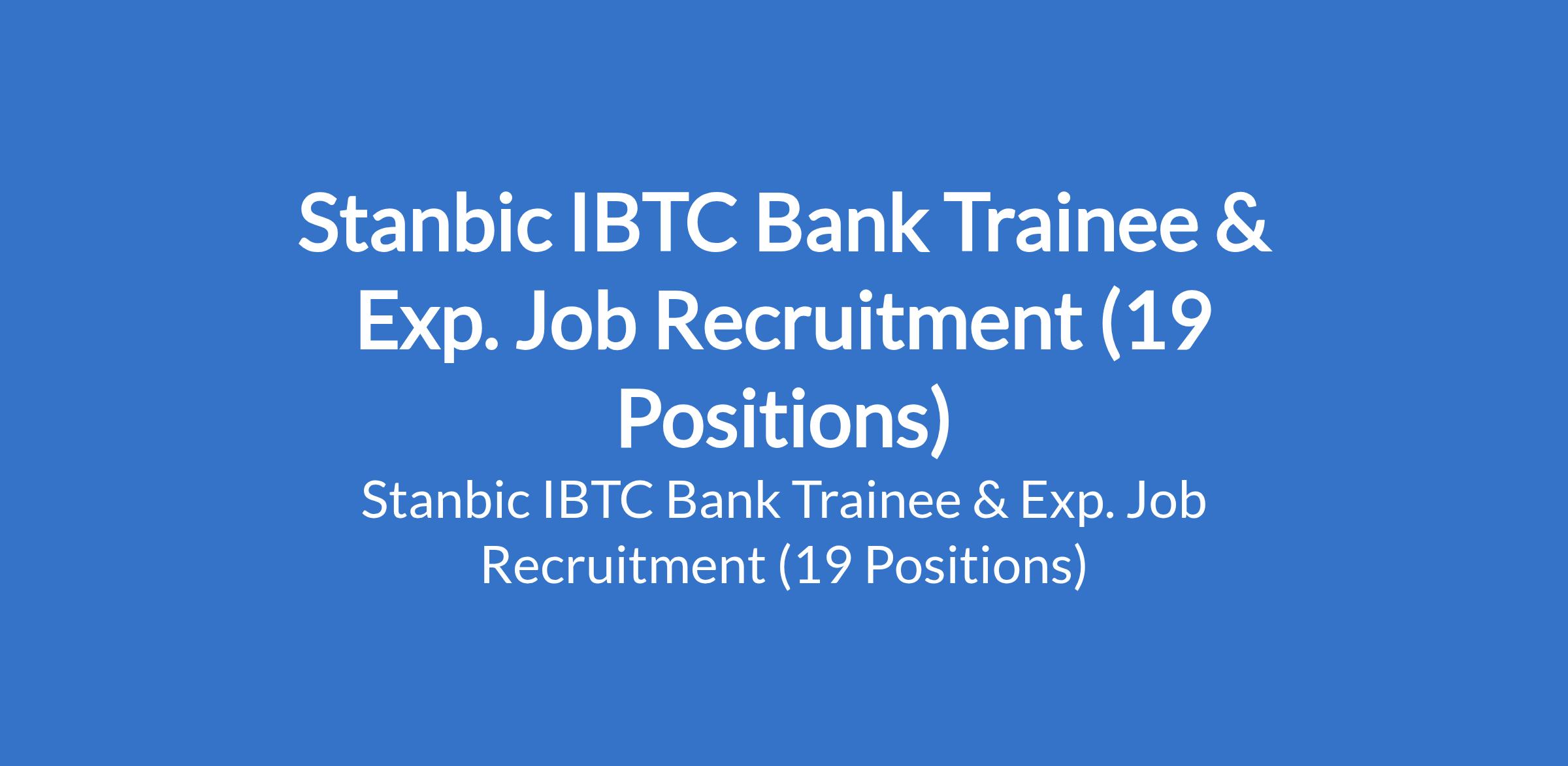 Stanbic IBTC Bank is recruiting suitable candidates to fill the following trainee and experienced positions in Lagos, Kano, Ebonyi, Abia, Edo, Delta and Rivers States: Graduate Trainee Programme; Digital Graduate Trainee Programme; Officer, Vulnerability Assessment & Penetration Testing; Officer, Business Development, Stanbic IBTC Insurance Broker; Manager, Zonal Control; Officer, Regulatory Compliance; Business Analyst, Digital Strategy; Team Lead, Enterprise Banking; Officer, Card Reconciliation; Officer, Quality Control; Executive Banker; Officer, Nostro & Central Bank of Nigeria Reconciliations; Officer, Client Service; Sector Lead (Energy and Infrastructure); and Banker, Business.