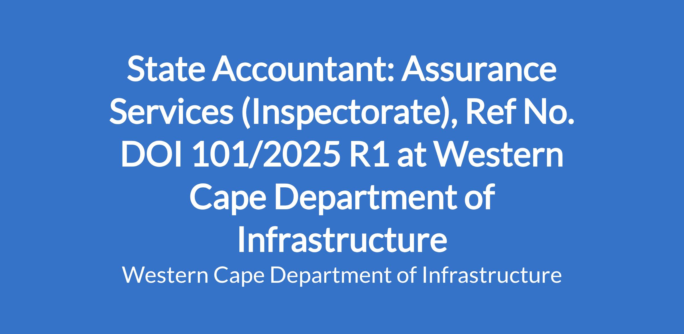 The Department of Infrastructure, Western Cape Government has an opportunity for a competent individual to render an assurance service with regard to financial administration.